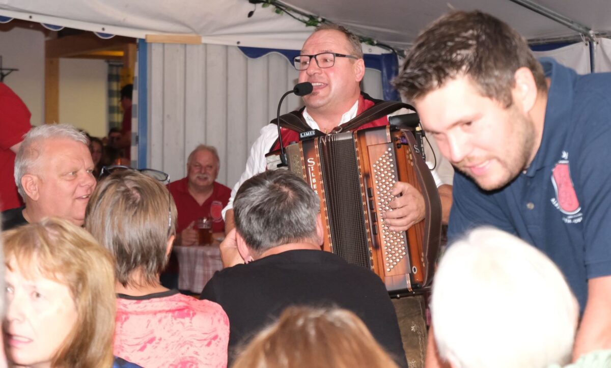 Der herbstlich dekorierte Dorftreff bot mit einem Anbauzelt den passenden Rahmen für ein zünftiges Fest, bei der die mitfeiernden und mitsingenden Gäste von Markus Brand musikalisch bestens unterhalten wurden.