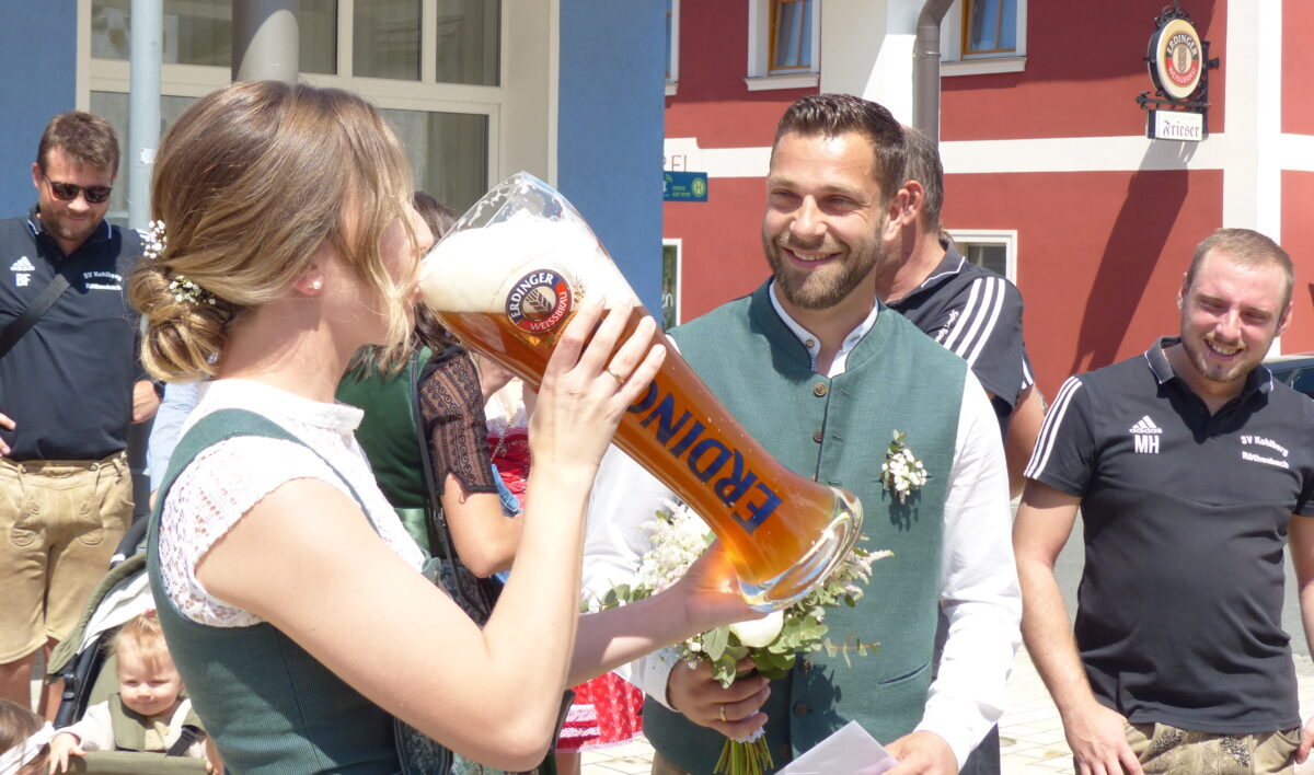 Seine Ehefrau Amy Rottenberg stammt aus Landsberg am Lech und ist als Justizsekretärin im Bayerischen Justizwesen beschäftigt. Seit 2019 haben beide ihren gemeinsamen Wohnsitz in Kohlberg, was sich auch nicht ändern soll. Beim Verlassen des Rathauses wartete nicht nur die Familie und Hochzeitsgäste, auch der SV Kohlberg/Röthenbach war in Mannschaftsstärke angetreten.