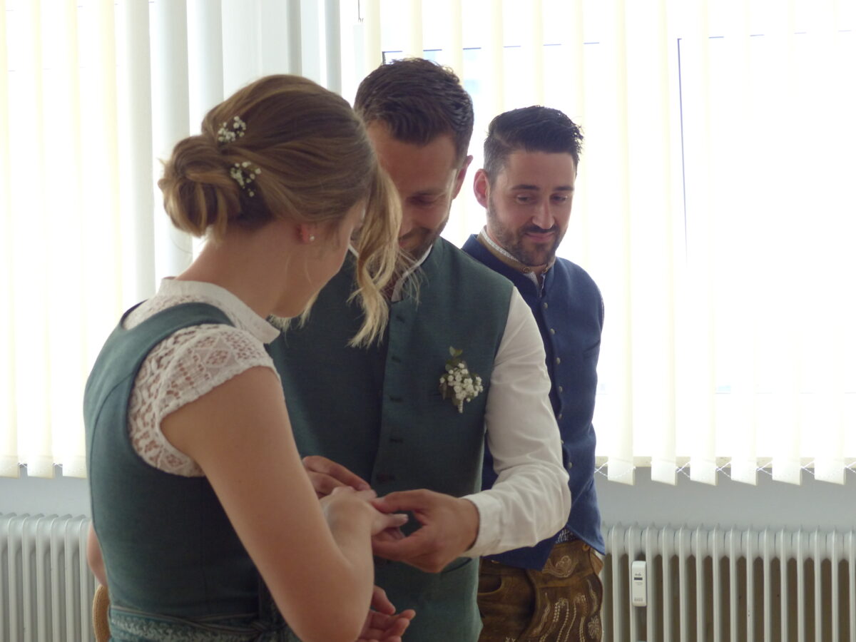 Am vergangenen Samstag war es nun so weit, gemeinsam traten sie zum Eheversprechen vor der Standesbeamtin aus Weiherhammer, Kim Ruhnau, an. Begleitende Worte sprach Severin Hirmer, er sollte eigentlich die Trauung vollziehen. Jetzt ist ihre Liebe, sie besteht seit 2016, auch besiegelt. Laut Brautpaar sei dieser Tag ein „Pflichttermin“, wusste Hirmer zu berichten. Die Aussage der Braut „Zu Hause ist da, wo Fabi ist“, müsse jetzt „Zu Hause ist, wo wir sind“ lauten, wie Hirmer anfügte.