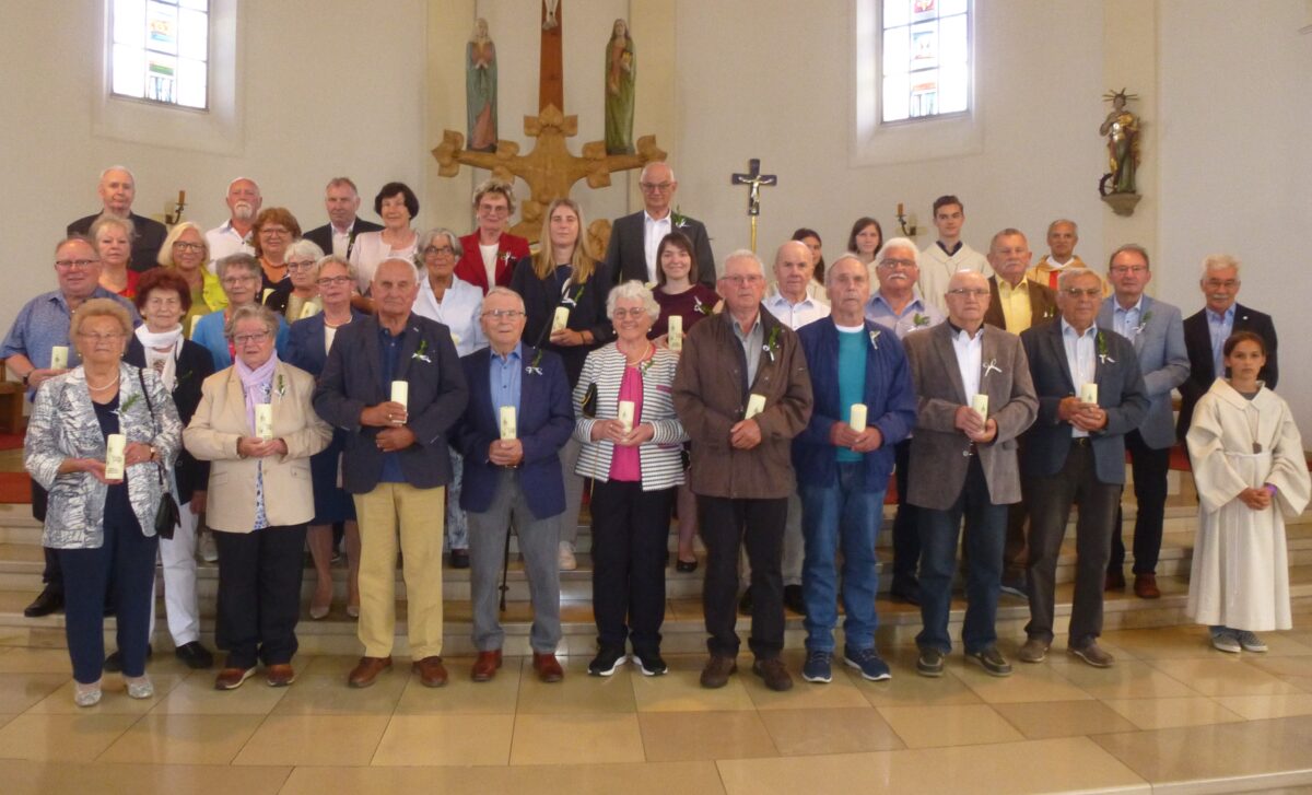Betty Neumann konnte das seltene 80- jährige, Rosina Malzer, Hans Zanner, Johannes und Gerlinde Gründel das 75-jährige Kommunionjubiläum begehen. Gerhard Braun war bis aus Rheinböllen/Hunsrück angereist und gehörte zu den neun Jubilaren, die das 70-Jährige feierten. Eine Kerze der Pfarrei erhielten auch Jubilare für 65 Jahre, 60 Jahre sowie für 40 und 25 Jahre.