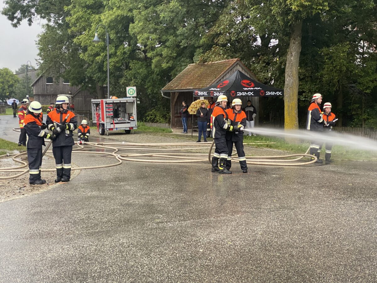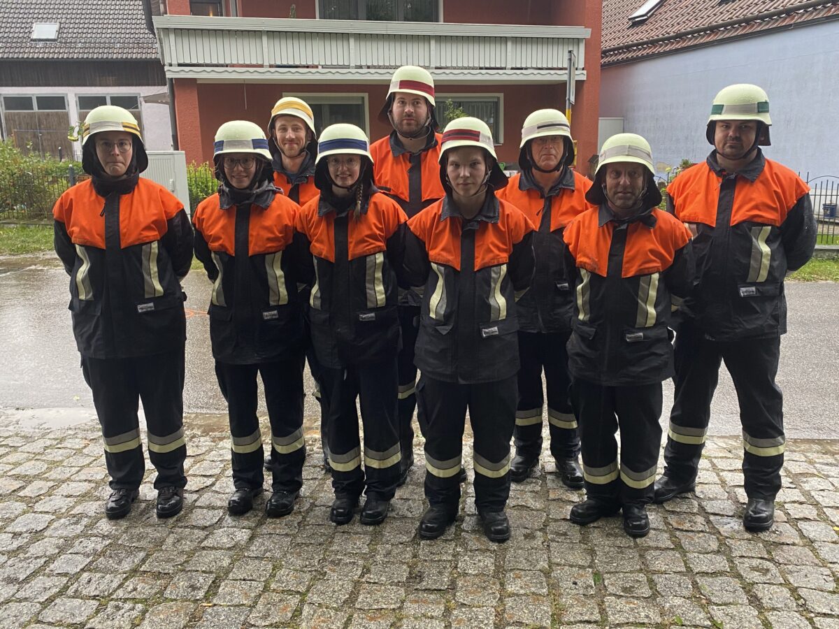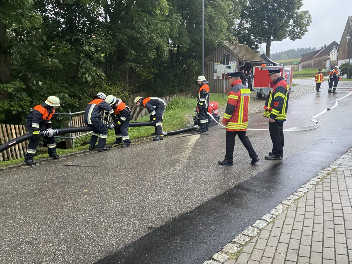 Gleich zwei Gruppen legten bei widrigem Wetter erfolgreich das Leistungsabzeichen ab. In der 1. Gruppe agierten Johanna Breitschaft, Uli Hafner, Eva Hammer, Martina Lang, Josef Pruy, Katharina Pruy, Martin Wurzer, Michael Wurzer und Reinhard Wurzer, in der 2. Gruppe Agnes Bösl, Christian Hartinger, Johannes Kick, Annalena Lang, Benjamin Liebl , Stefan Pruy, Gianluca Ruml, Johannes Wurzer und Jonas Wurzer. Alles ging schnell und sicher von der Hand. Ob beim knüpfen der Feuerwehrknöten und anlegen der Feuerwehrleinen oder beim auslegen der Schläuche, ansaugen mit der Pumpe und dem Zielspritzen. Auch die Trockensaugprobe funktionierte einwandfrei.