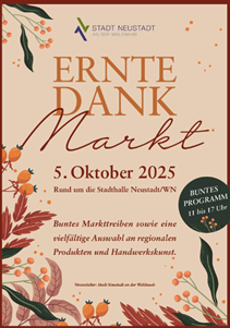 Die Stadt lädt alle Bürger sowie Gäste aus der Umgebung herzlich ein, den zweiten Erntedankmarkt zu besuchen und gemeinsam einen genussvollen und geselligen Tag zu verbringen.