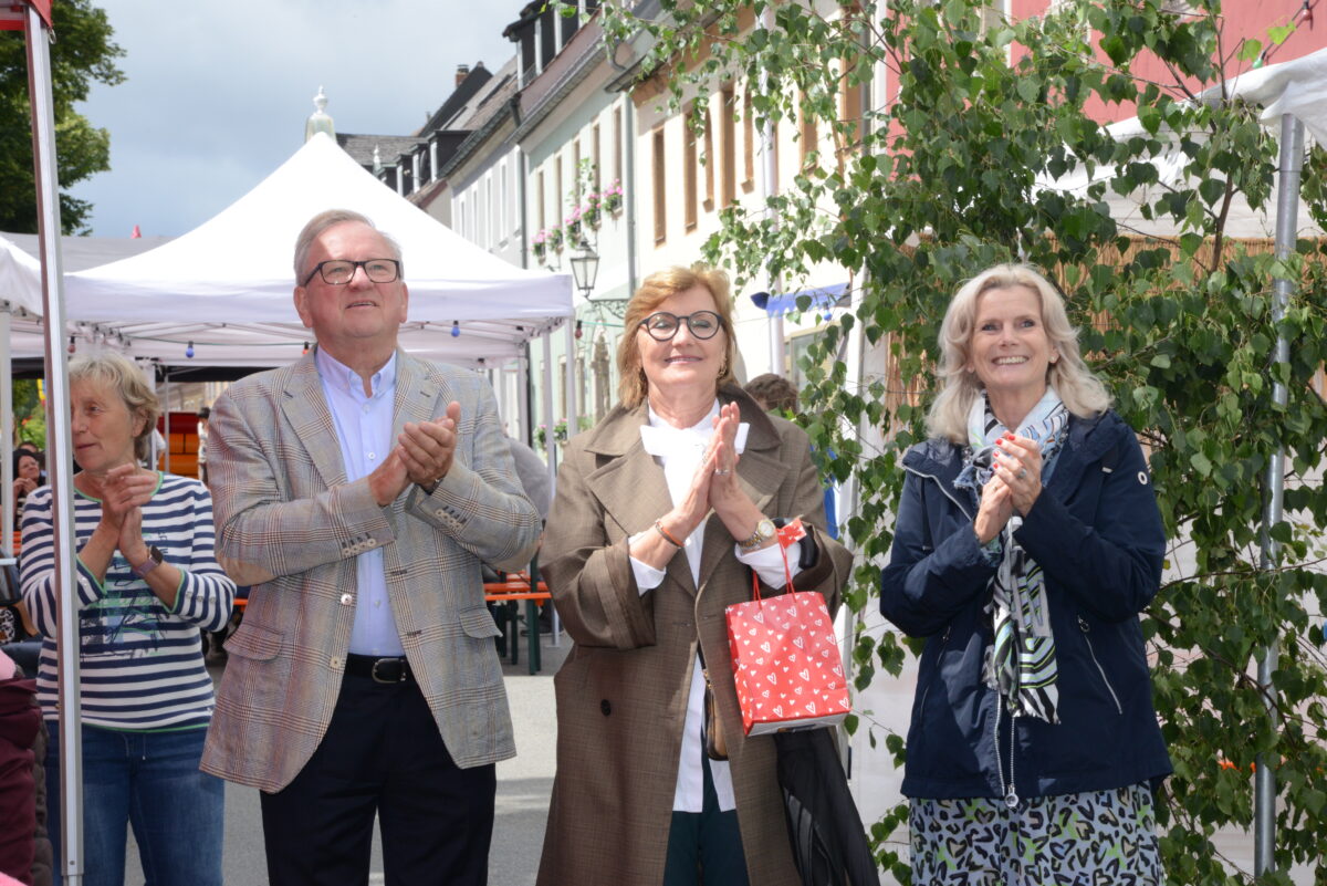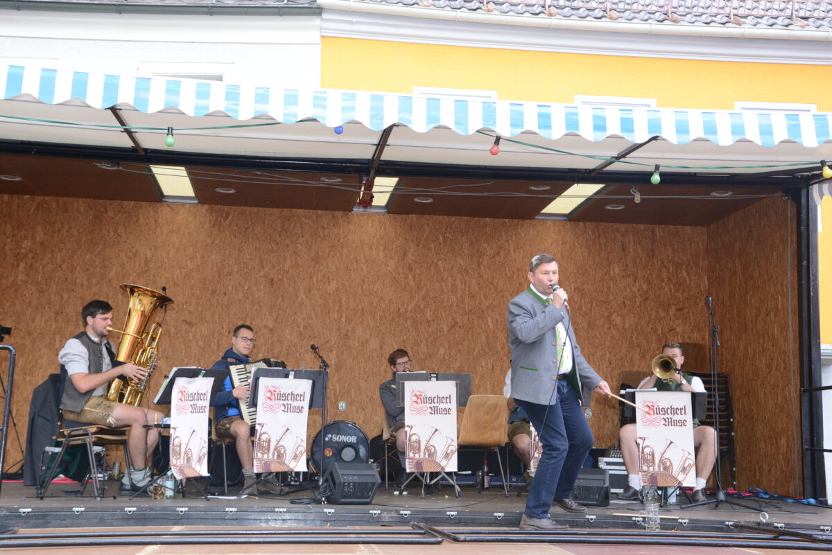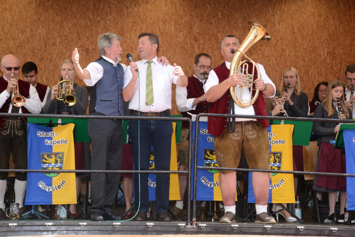 Zum Abschied dann der „Pleysteiner Marsch“ mit der Stadtkapelle Pleystein und den Sängern, Altbürgermeister Johann Walbrunn und Bürgermeister Rainer Rewitzer. Letzterer zeigte sich beim Bürgerfest als Sänger in Hochform, besonders beim Partyhit „Dem Land Tirol die Treue“. Über die Mittagsessenszeit spielte die „Stadtkapelle Pleystein“, bis gegen 14 Uhr die „Rüscherl Muse“ den richtigen Ton für das Bürgerfest angab und mit ihrem bunten Musikprogramm die Besucher begeisterte.