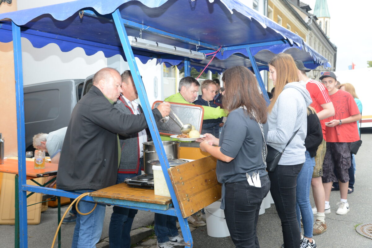 Das Bürgerfest Pleystein erlebte am Sonntag ein echtes „Wechselbad“. War es am Vormittag beim Frühschoppen mit der Stadtkapelle Pleystein so richtig angenehm, wurde es am späten Nachmittag echt kühl und vor allem nass. Doch unabhängig vom Wetter freuten sich die Vereine mit den Essensständen über den Hunger der Gäste und meldeten ein „ausverkauft“.
