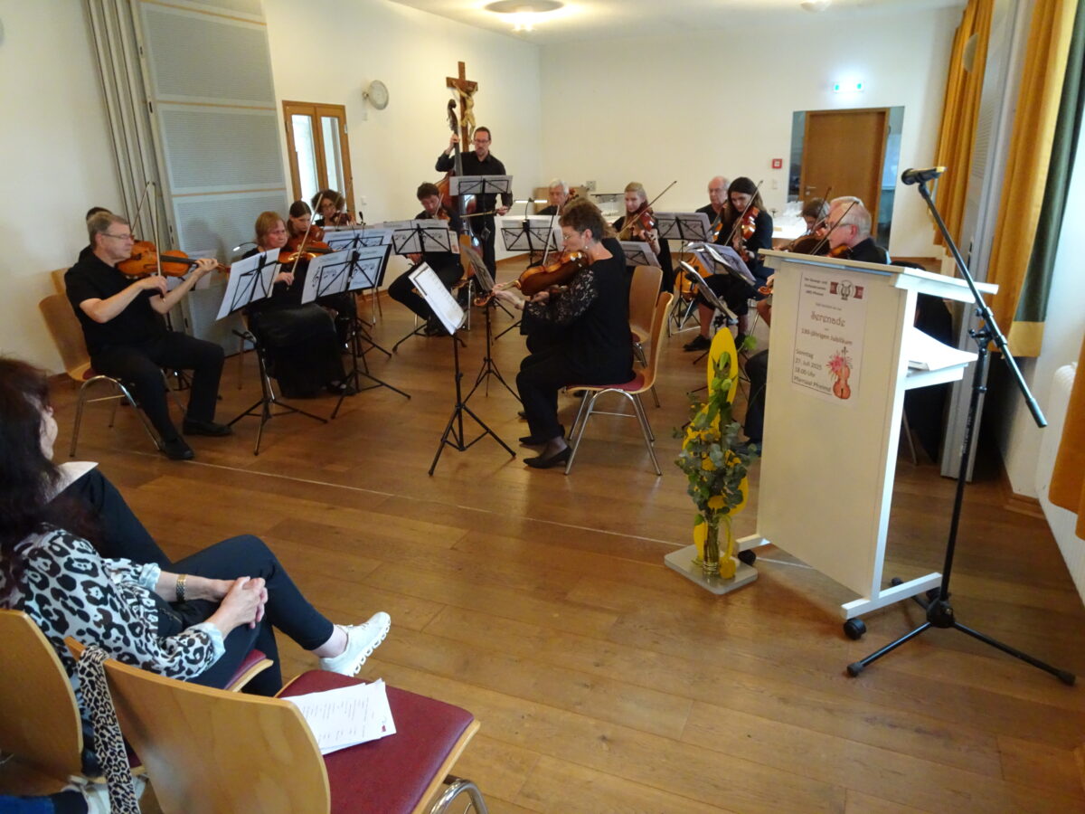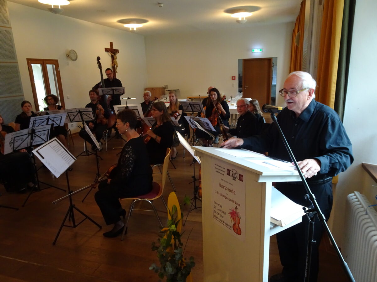 Im vollbesetzten Pfarrsaal feierte der Gesang- und Orchesterverein sein 130-jähriges Jubiläum im Rahmen einer Serenade. Mit der bekannten Eurovisionsmelodie von M.A. Carpentier stimmte das aus 17 Streichern bestehende Orchester die interessierten Zuhörer ein. Nach der Begrüßung des Vorstands Karl Prell erschallten Klänge von Händel und Haydn. Bei letzterem Menuetto gaben ein Streichertrio aus einem Cello und zwei Violinen gekonnt ihr Debüt.