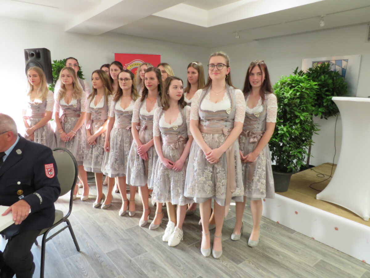 „So musste nach der Anschaffung des ersten Tanklöschfahrzeugs eine neue Unterstellmöglichkeit gesucht werden, damit das Wasser im Tank nicht gefriert. Grund war die fehlende Heizung im alten Gerätehaus“. Die Betreuerinnen der Festdamen Petra Füssl und Melanie Lindner und die Festbraut durften ihre Erfahrungen der Vorbereitungen schildern. 2. Kommandant Bernhard Dotterweich zeigte mit einer Videopräsentation die Geschichte der Feuerwehr in Altenstadt.