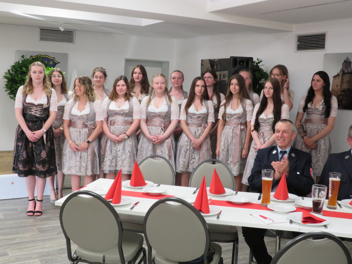 Vorsitzender Wolfgang Müller und Kommandant Markus Lindner begrüßten die Gäste in d`Wirtschaft. Ein besonderer Gruß galt den Schirmherren Landrat Andreas Meier und Bürgermeister Ernst Schicketanz sowie den Ehrenmitgliedern. Der Dank der Beiden galt der Patenwehr aus Neustadt und den Patenkinder der Wehren auch Störnstein, Meerbodenreuth und Klobenreuth für ihre Kommen. Beeindruckend der folgende Einzug der 32 Festdamen mit der Festbraut Tatjana Hahnel.