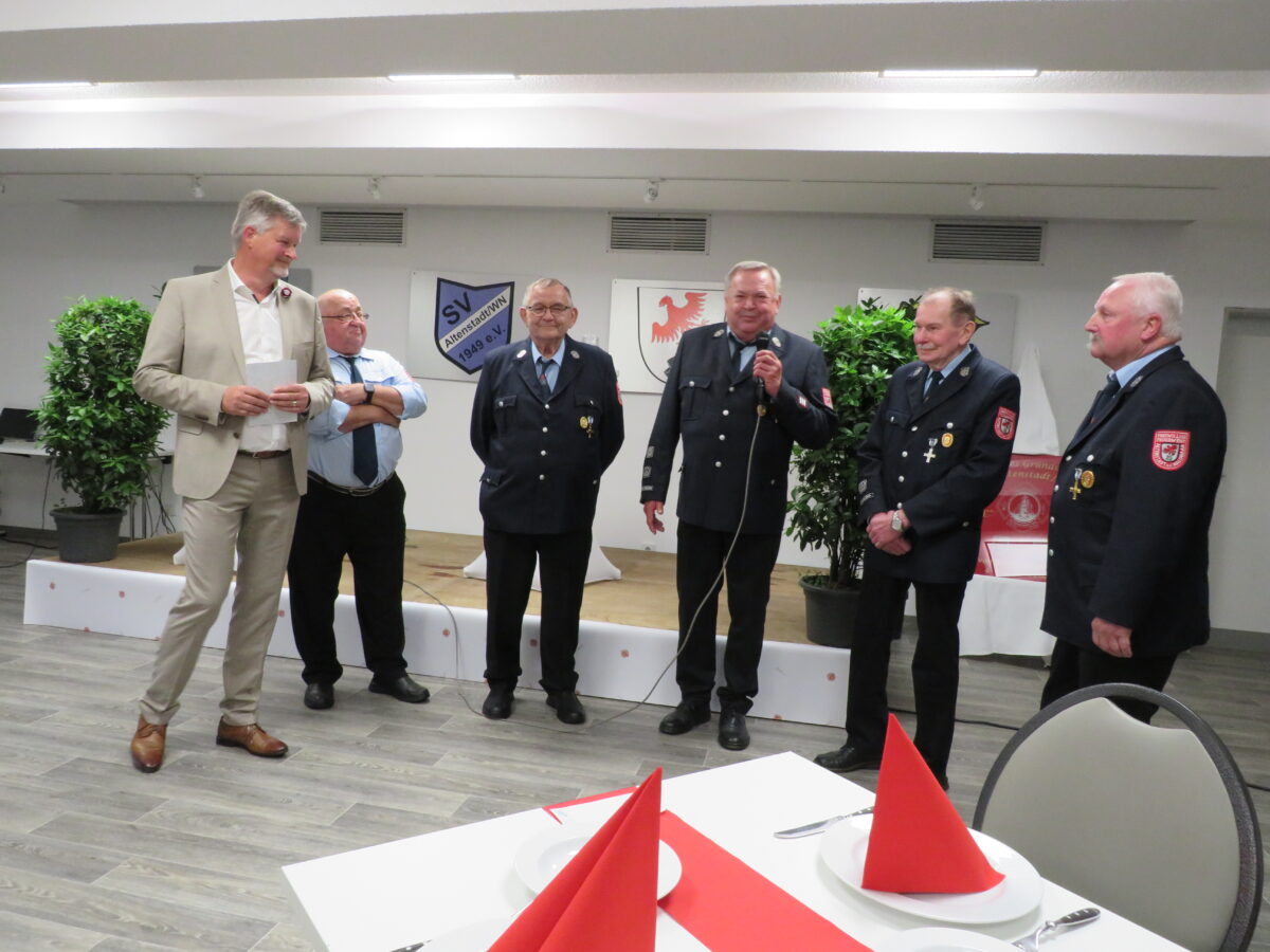 Weiter wurden die ständig steigenden Anforderungen angesprochen. Ohne Kameradschaft und Zusammenhalt in der Feuerwehr wären diese nicht mehr zu bewältigen. Im zweiten Teile der Interviews befragte Andreas Wach die Mitglieder der Feuerwehr. Zur Rede und Antwort wurden Kommandant Markus Lindner, Vorstand Wolfgang Müller, die Ehrenmitglieder und alle ehemaligen Kommandanten gebeten. Dabei kam so manche Anekdote ans Licht.
