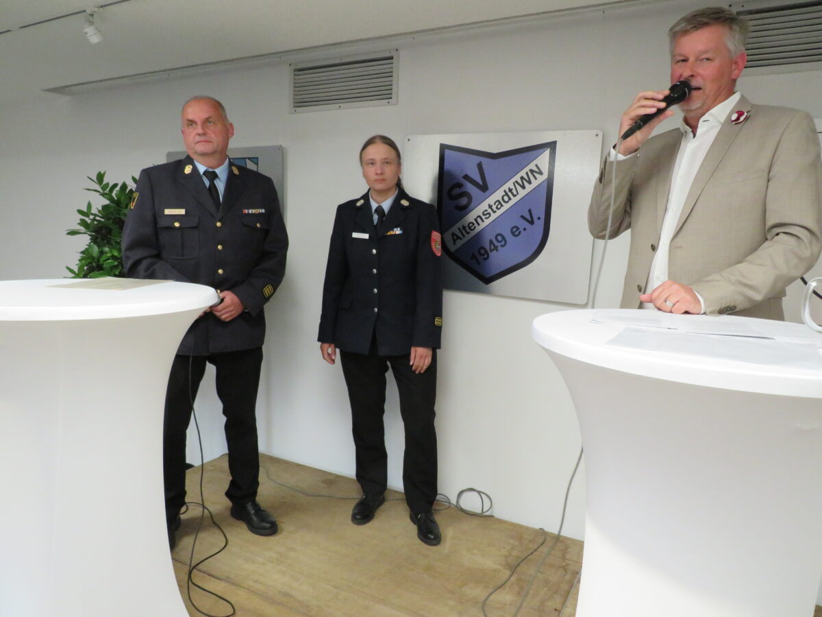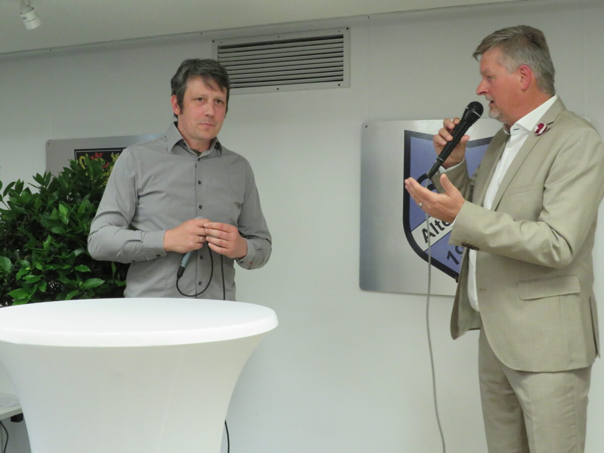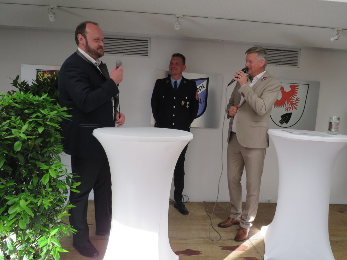 In Interviews stellt Moderator Fragen an die Ehrengäste und Mitglieder Feuerwehr Altenstadt. Den Fragen stellten sich Landrat Andreas Meier, Bürgermeister Ernst Schicketanz, Kreisbrandinspektor Martin List, Kreisbrandmeisterin Carola Adam und Feuerwehrreferent Andreas Greiner. Dabei kamen das Festwetter nächste Woche, die Wichtigkeit des Ehrenamts, der Respekt vor den Rettungskräften oder die Nachwuchsgewinnung durch Jugend- und Kinderfeuerwehren zur Sprache.