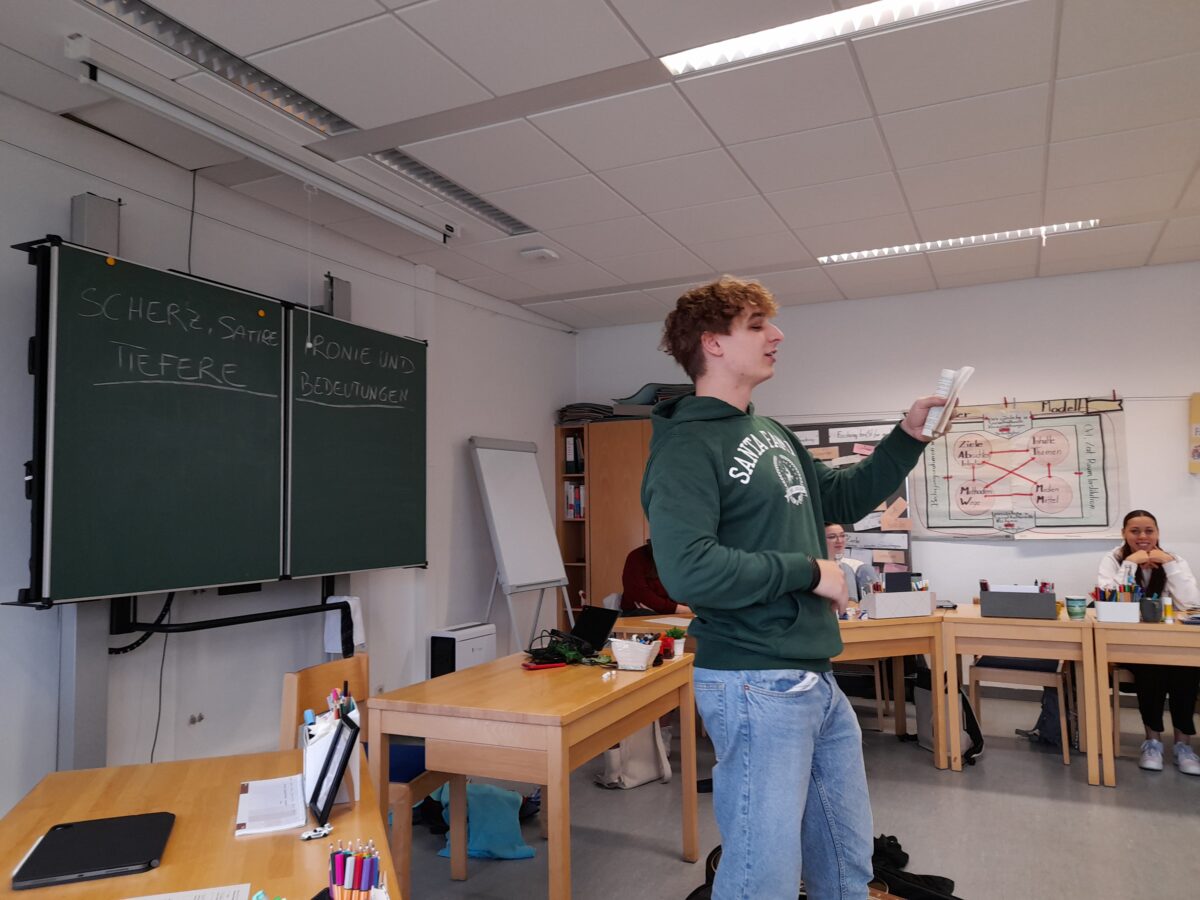 Dass das Stück aber nicht nur für 8. und 9. Klassen geeignet ist, bewies die Begeisterung der Studierenden im 1. Studienjahr der Fachakademie für Sozialpädagogik Weiden. Auch sie bestätigten, sich mit der Figur des Len absolut identifizieren zu können. Sie wollten unter anderem auch wissen, was den Beruf des Schauspielers am schwersten macht. Das sei vor allem die Angst vor unsicheren Zeiten ohne Engagements. Diese Angst gibt es unter Schauspielern, beziehungsweise wohl allen Kulturschaffenden schon immer. Dazu kommt, dass die Theater seit Corona noch immer unter Publikumsschwund leiden.