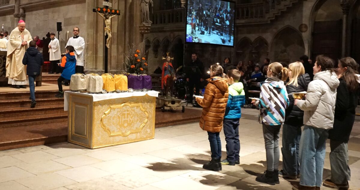Zu den Angeboten gehörten ein Gesangsworkshop, Bastelaktivitäten, verschiedene Spiele und sogar ein Weihrauchworkshop. Ein besonderer Höhepunkt des Tages war die Chrisammesse im Dom von Regensburg, die unter der Leitung von Bischof Rudolf Voderholzer stattfand. Bei dieser Messe übernahmen die Firmlinge der Pfarrei Flossenbürg eine bedeutende Rolle: Sie trugen dem Bischof während einer Prozession die Gaben zum Altar vor.