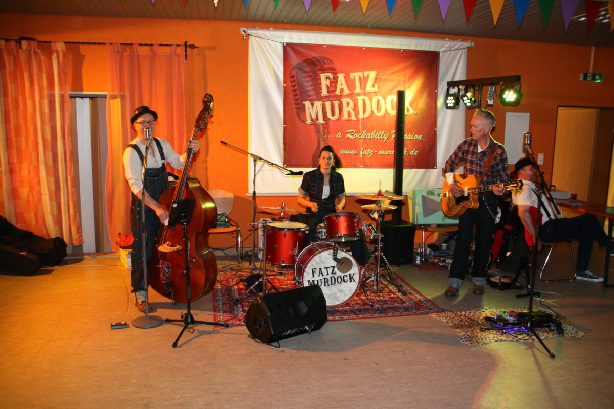 Rockige Klänge schallen aus dem Schwarzenbacher Sportheim. Männer laufen in coolen Lederjacken auf. Frauen kommen in weiten Petticoat-Röcken. Die “Billy Cats Rockabilly Crew” nimmt ihre Gäste mit auf eine musikalische Zeitreise in die 1950er Jahre. Dafür hatten sie extra die Band “Fatz Murdock” in die ländliche Oberpfalz geholt. Das Trio stammt aus dem Ingolstädter Raum.