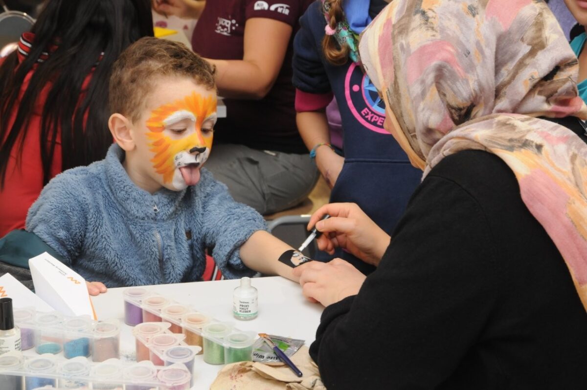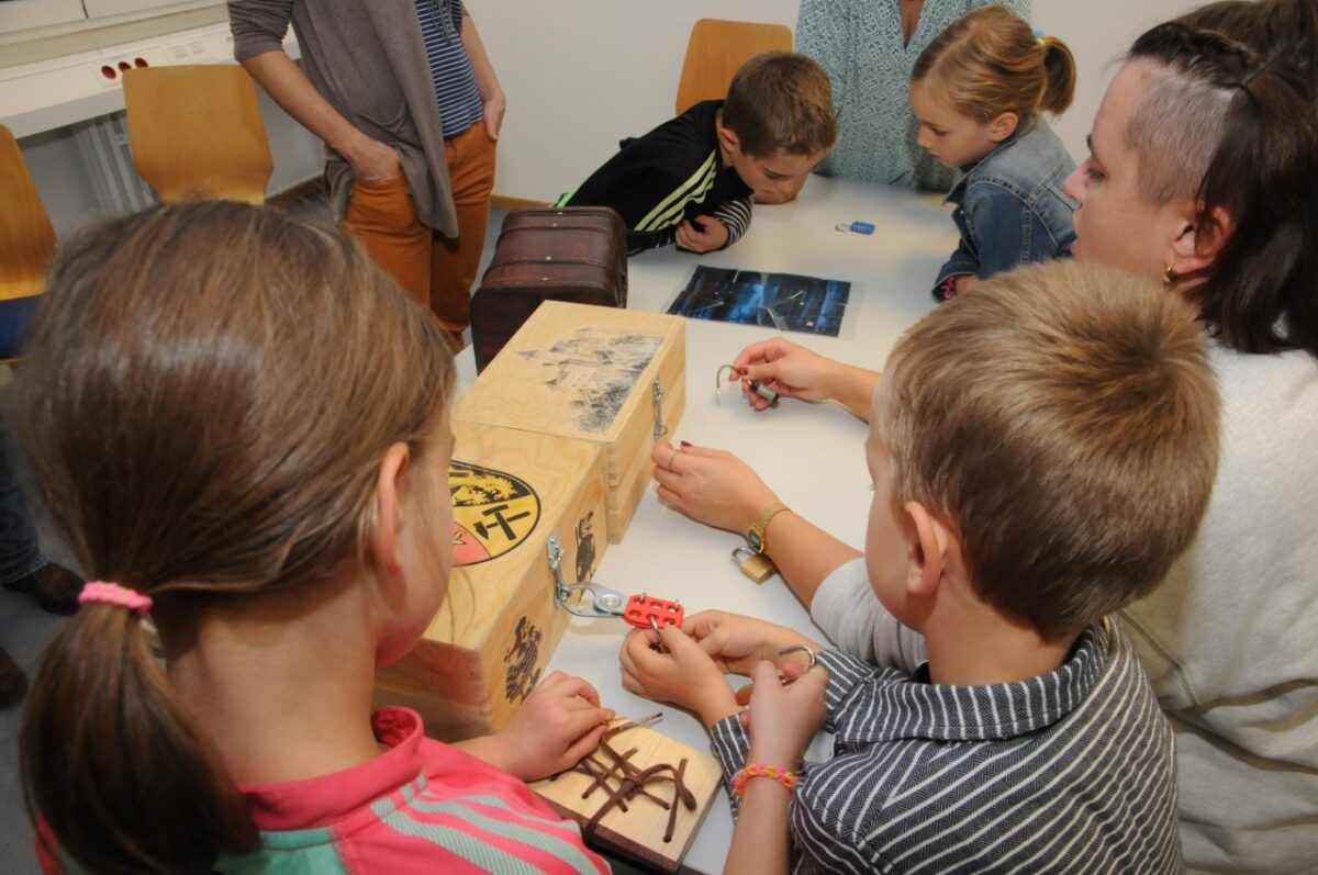 Im Stockwerk darüber machten sich die Kinder daran, Kräutersalz und Butter selbst herzustellen, sie schüttelten kräftig und mit Erfolg. Nebenan beim Kinderschminken erhielten vor allem die Mädchen begehrte Glitzer-Tattoos, während sich in der Papierflieger-Werkstatt alle wiederfanden. Auch das Zimmer mit den Legosteinen war stets voll belegt, kleine wie auch große Baumeister schufen kühne Architekturen. Algen-Reaktor und Energiefahrrad warteten daneben, und was virtuelle Lern- und Lehrumgebungen alles können, bewies die 3-D-Brille. Ein Demenzparcours samt einem Anzug, der Alter simuliert, vermittelte anschaulich ein Bild von den Problemen, die viele Menschen haben.