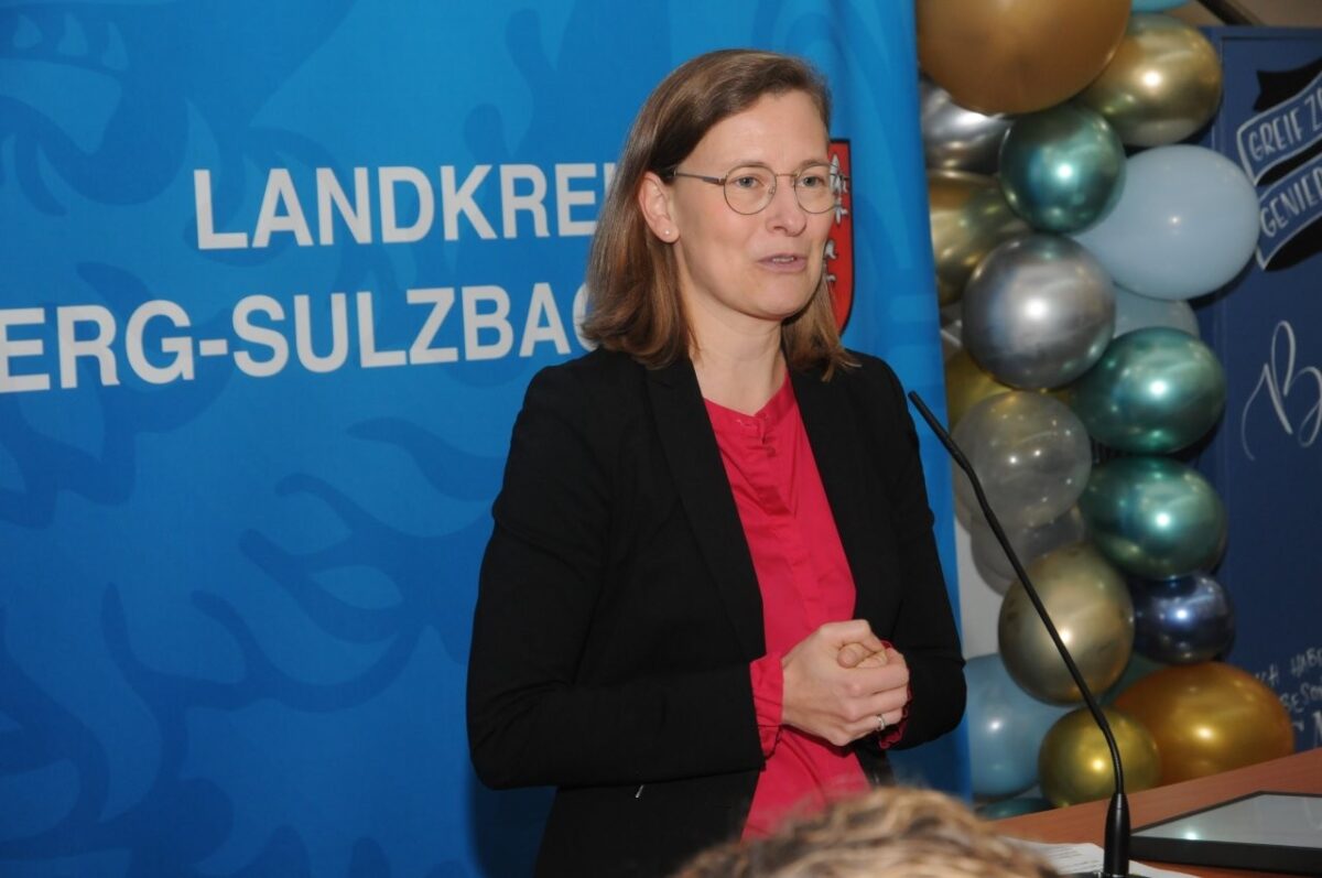 Natürlich stand das ganze vhs-Team aus Aktiven und auch Ehemaligen parat, und Chefin Claudia Mai bekam vom Landrat stellvertretend für die enorme Vorbereitungsarbeit Blumen. Die Leiterin der Geschäftsstelle des Bayerischen Volkshochschulverbandes, Dr. Regina Sgodda, gratulierte im Namen der 180 bayerischen Volkshochschulen zu der gelungenen Investition in die Zukunft. “Die vhs senkt viele Kosten für den Landkreis enorm durch ihre Tätigkeit auf den Feldern der Gesundheit, der Integration und der Vermittlung von Sprache, Werten und Normen. Sie ist eine Investition in die Zukunft der Kommunen und der Unternehmen und bei Landrat Richard Reisinger in besten Händen.”