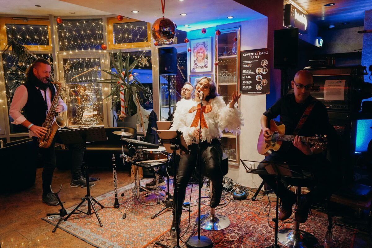 Sie alle mischten sich unter die knapp 250 Gäste, die im Innenbereich zur Livemusik das Tanzbein schwangen, sich an einem Marktstand mit Adventsfranz-Utensilien eindeckten oder sich einfach bei guter Laune das Adventsfranz-Bier schmecken ließen.