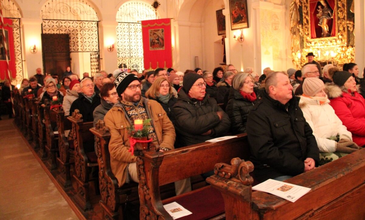 Es war kalt in dem barocken Gotteshaus, in dem es keine Heizung gibt. Dazu sorgten Dutzende Kerzen nicht nur für ein wenig Licht und Wärme, sondern auch für ein einmaliges Ambiente. So müssen es die Kirchgänger in früheren Zeiten in dieser kalten Jahreszeit immer erlebt haben. Die Besucher des Altbayerischen Adventsingens waren gegen die Kälte warm eingepackt und die Musik und die Texte erwärmten schnell ihre Herzen.