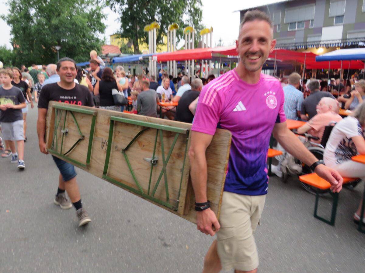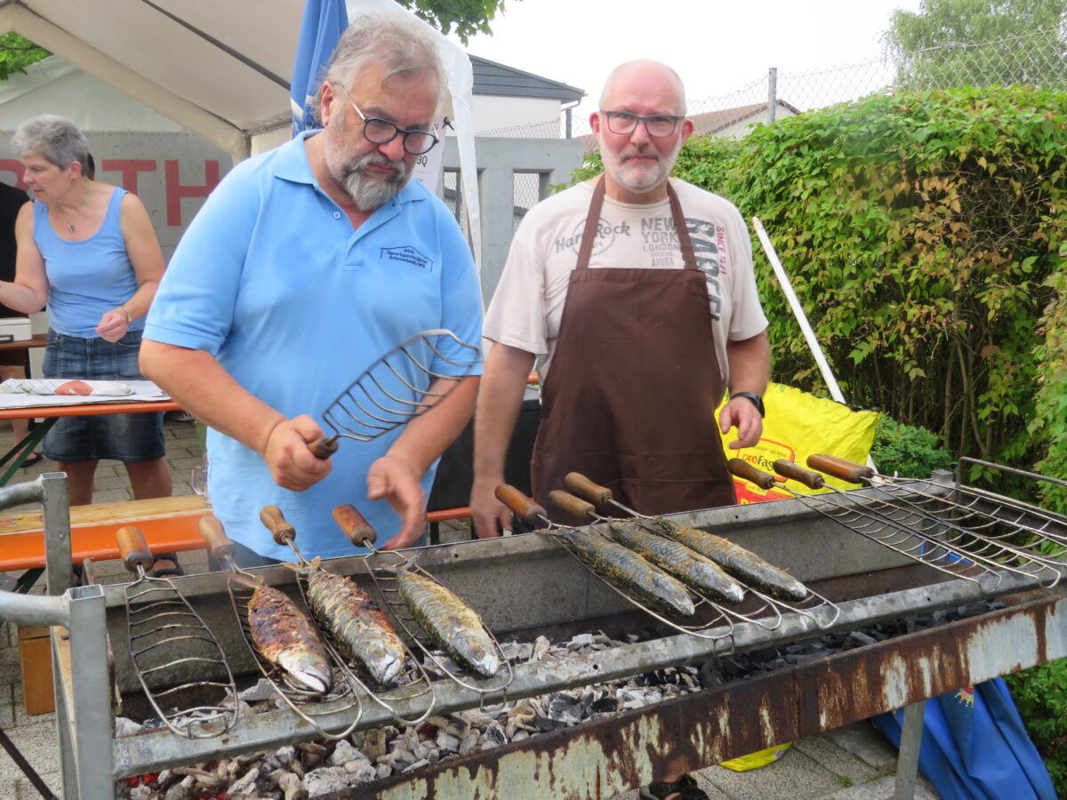 Der größere Ansturm beginnt nach etwa zwei Stunden. Vor allem die kulinarischen Spezialitäten und das gut gekühlte Moosbacher Festbier kam bei den Festbesuchern gut an. Viele nutzen die Gelegenheit, das Abendessen auf dem, Fest einzunehmen. Im Angebot waren Makrelen gegrillt von der BSG Beyer & Co. Steaks, Bratwürste, Käse und Brezen bot die Feuerwehr an. Dotsch und Fischsemmeln gab es bei der CSU-Familie. Die Eichenlaubschützen Meerbodenreuth servierte Gyros-Suppe.