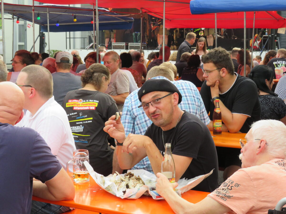 Der Andrang am Samstag war nicht so groß wie vor einem Jahr beim 10. Rathausfest in Altenstadt/WN. Dennoch waren die Bänke auf der Piazza und rund ums Rathaus zeitweise gut gefüllt. Vor allem die Übertragung des Fußballspiels Deutschland gegen Dänemark am Abend leerte große Teile des Festplatzes. Dennoch feierte nicht wenige der Festbesucher bis tief in die Nacht. Doch die Rekordzahlen vom vergangenen Jahr konnten nicht erreicht werden.