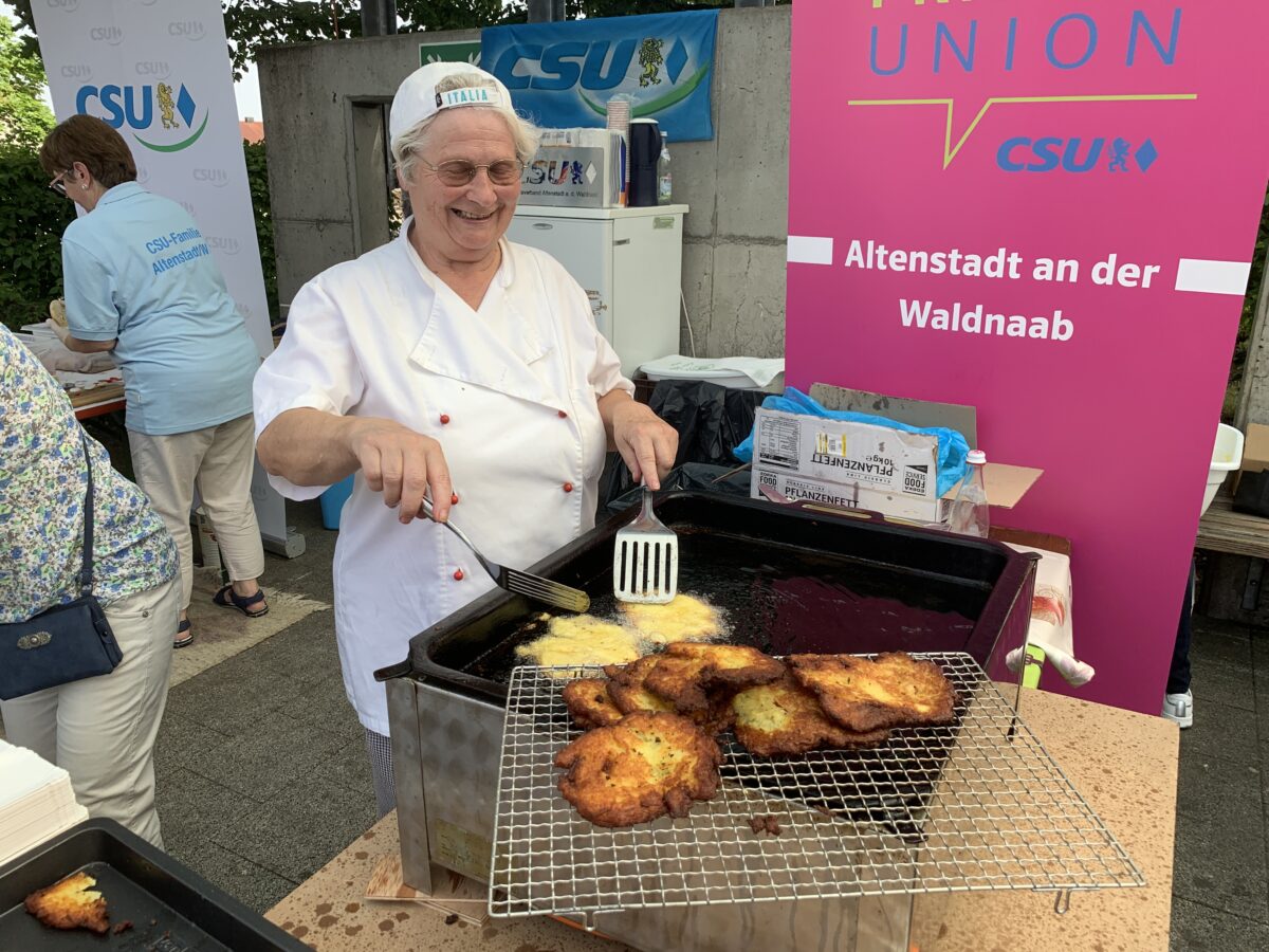 Burger von der Schützengesellschaft mit Bacon oder Käse ließen sich die Besucher schmecken. Ein Eis von der Hofkäserei Lang bot der Verein Bonsai an. Süße Waffeln backte der Elternbeirat des Kindergartens Arche. Dazu wurden Getränke der Moosbacher Brauerei vom SV Altenstadt und den Weiß-Blau Keglern ausgeschenkt. Gut besucht war die Wählbar der Freien Wähler in der Sekt, Eismannzoigl, Hugo und Aperol kredenzt wurde. Weiß- und Rotwein bot der Ortsverein der SPD an.