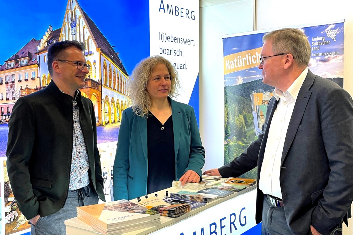 Auch in diesem Jahr präsentiert sich die Stadt Amberg zusammen mit dem Landkreis Amberg-Sulzbach auf der Freizeit, Touristik und Garten, die vom 12. bis 16. März auf dem Messegelände in Nürnberg stattfindet. Erneut haben das städtische Amt für Tourismusförderung und seine Leiterin Heike Kober eine ganze Reihe neuer Angebote im Gepäck. „Ich bin mir sicher, dass wieder viele Gäste stehenbleiben und sich über die vielfältigen Angebote informieren werden, die bei uns in Amberg und der Region auf sie warten“, betonte Oberbürgermeister Michael Cerny, der es sich nicht hatte nehmen lassen, zur Eröffnung persönlich vorbeizukommen.