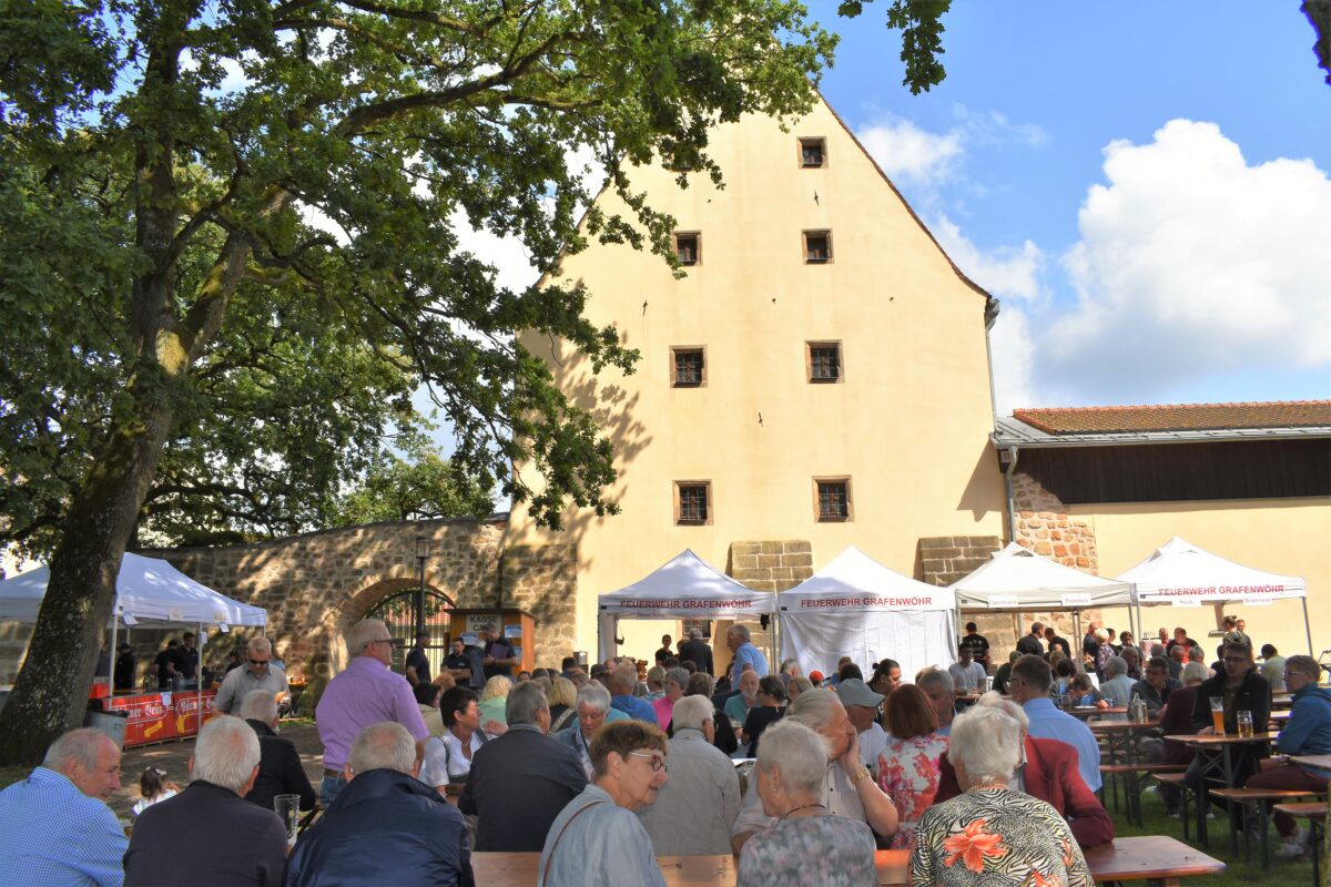 Nach dem Gottesdienst ging es mit der weltlichen Feier weiter, zu dem die Feuerwehr Grafenwöhr am Festplatz beim Kastenhaus eingeladen hatte. Neben den kulinarischen Schmankerln spielte die Stadtkapelle unter der Leitung von Hans Rettinger zur Unterhaltung auf.