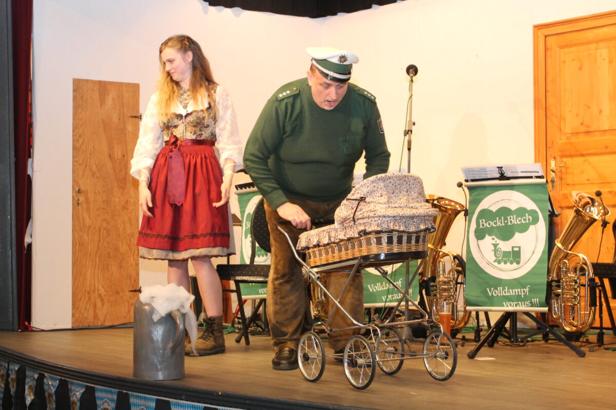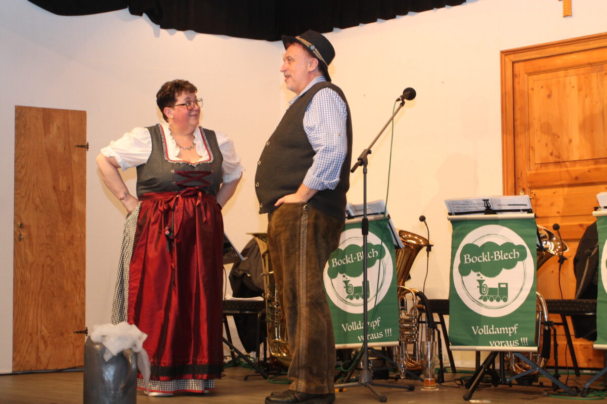 Den musikalischen Rahmen des Abends bildete die Kapelle “Bockl-Blech”, die mit bayerischer und böhmischer Blasmusik das Publikum in ihren Bann zog. Besonders die Darbietungen bekannter Titel von Ernst Mosch, wie der Walzer „Rauschende Birken“ und die „Gartenpolka“, sorgten für begeisterte Zustimmung. Nach dieser musikalischen Einstimmung folgten zur vollen Stunde die Auftritte der Akteure der Dorfbühne Waidhaus.