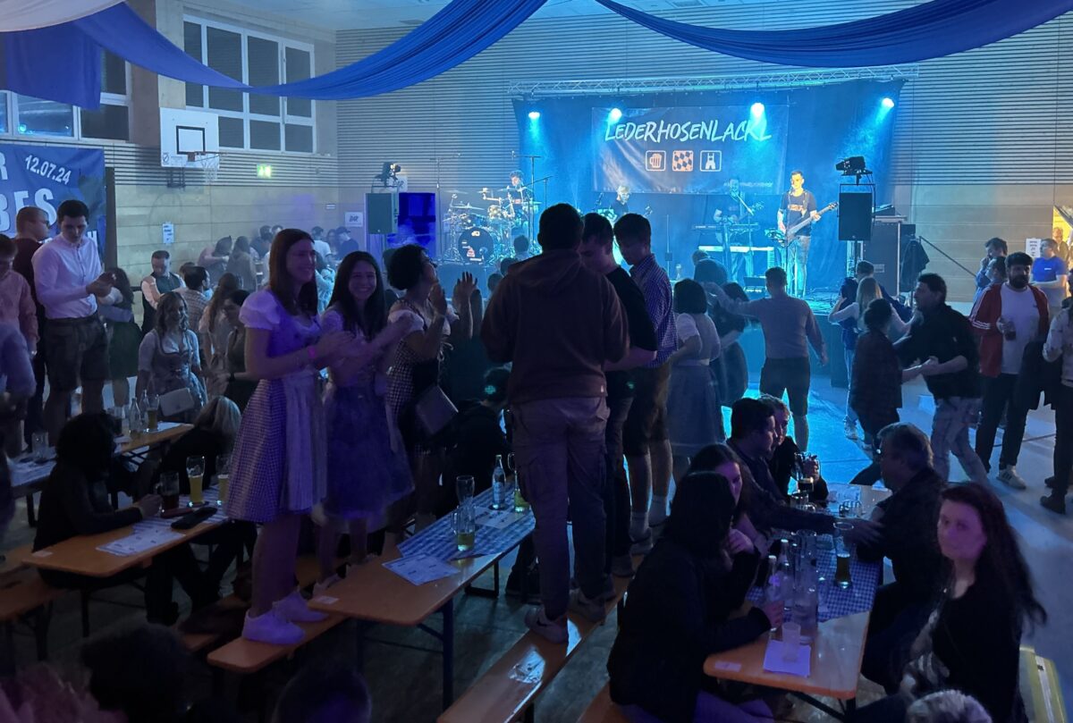 Im beschaulichen Ort Immenreuth sorgt das große Starkbierfest des SV Immenreuth für ausgelassene Stimmung. Die Veranstaltung in der Mehrzweckhalle wird zum Schauplatz einer fröhlichen Feier, bei der die Band „Lederhosen Lackl“ für musikalische Unterhaltung sorgt. Die Tanzfläche ist durchgehend bevölkert von Gästen, die in traditioneller Tracht erscheinen und sowohl die Jugend als auch die Älteren umfasst.