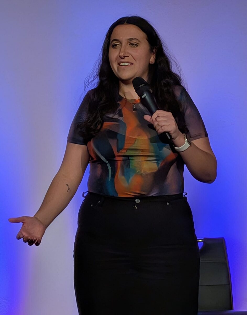 Die weibliche Hauptdarstellerin an diesem Abend war die Halbiranerin Pegah Meggendorfer aus Bad Aibling. Die freie Journalistin betonte mehrmals, wie sehr sie ihre Jobs doch liebt, erzählte von eigenen Kundensupport-Erfahrungen und dass ihr Freund ein typischer Deutscher ist, der sich bei der Einrichtung ihrer gemeinsamen Wohnung nicht von „Feng Shui“, sondern von den aktuellen Brandschutzbestimmungen inspirieren ließ.