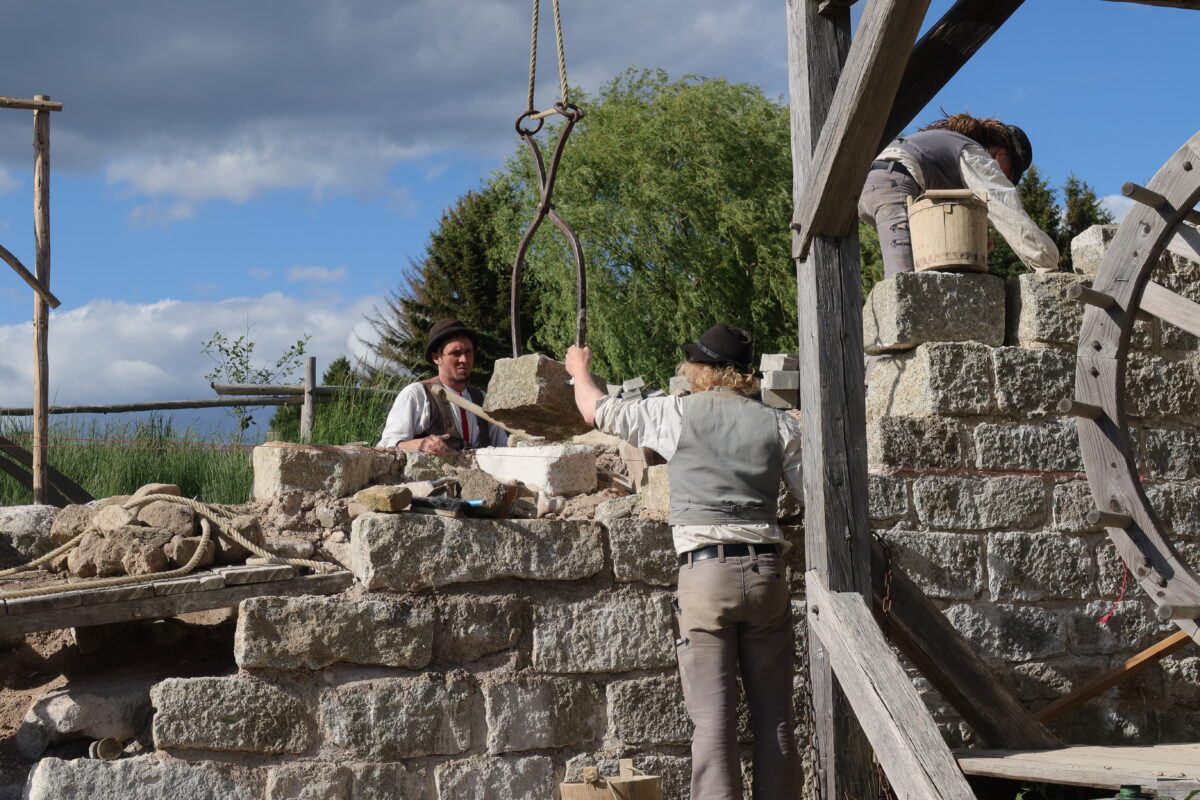 Das Ziel des European Heritage Volunteers Trainings ist es, den Teilnehmern tiefe Einblicke in die mittelalterlichen Bautechniken zu ermöglichen und dabei die Bedeutung des kulturellen Erbes zu vermitteln. Unter fachkundiger Anleitung werden sie sich handwerklichen Fertigkeiten widmen, wie der traditionellen Steinbearbeitung, darunter das Spalten von Granitblöcken, das Bearbeiten und Setzen von Quadersteinen mithilfe eines mittelalterlichen Krans. Auch die Herstellung von Kalkmörtel und das Behauen von Balken stehen auf dem Programm. Diese praktischen Tätigkeiten werden von Theoriemodulen zu historischen Baumethoden, Materialkunde und der Ethik der Denkmalpflege ergänzt.
