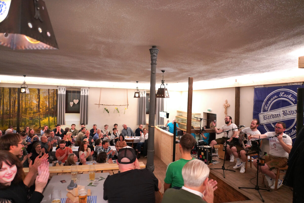 LANDkultur – Chef Hans-Peter Reil freute sich über das proppenvolle Haus. Für den ungewohnten Barbari Bavarii – Konzert – Besucher war dieser Abend unter dem Motto: „Kommen – Lachen – Hosnbieseln“ doch etwas überraschend. Die drei Barbaren sind Peter „Beda“ Greiner, genannt „Das kleine Wesen“, der in Görnitz aufgewachsen ist. Der Zweite im Barbarenbunde ist „das bärtige Monster“ Christian „Weiti“ Witt, eigentlich aus Botzersreuth und so wie Greiner in Weiden wohnend. Stephan „Rosi“ Rosner, der in Albersrieth knapp drei Kilometer von der Waldthurner Verräterklause residierende Flosser, nennt sich die „Bestie mit dem großen Maul“. Auf der kleinen Bühne war an diesem Abend ständige Bewegung angesagt, die drei Hauptprotagonisten wechselten ständig bei ihren sprachlichen und musikalischen Überlegungen, welchen Titel sie in ihr neue Programm aufnehmen könnten vielerlei Instrumente, angefangen von der Gitarre über Keybord bis zur Melodika und Cajon.