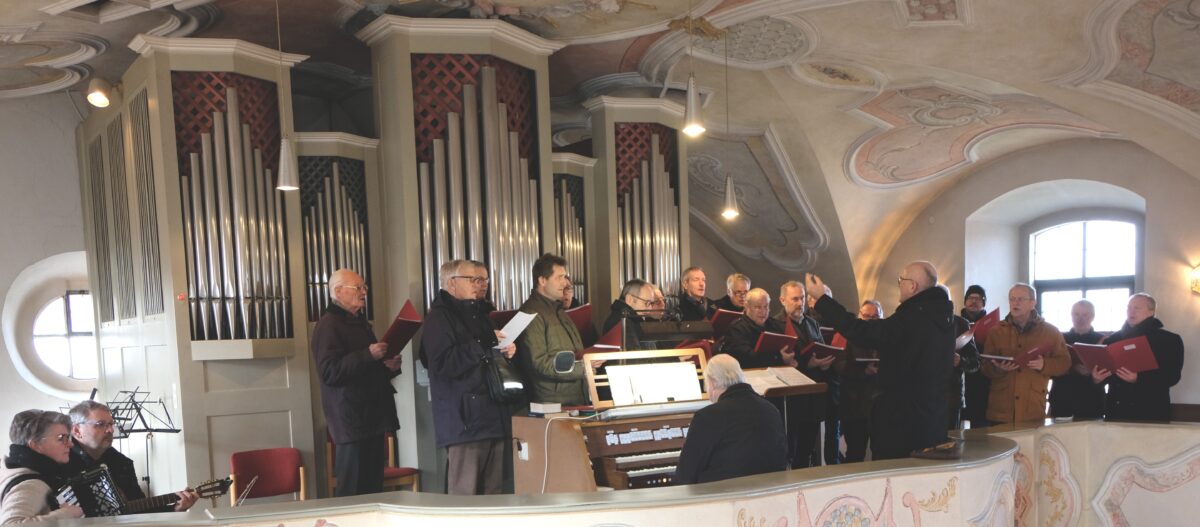 Am dritten Sonntag vor der Passionszeit erfreute der Chor die Gläubigen und Gottesdienstbesucher in der Pankratiuskirche in Flossenbürg und anschließend in der St. Johannes Baptista Kirche in Floß. Jede der beiden Aufführungen war ein schönes Erlebnis. Die Chorgemeinschaft zeichnete sich durch Harmonie und Klangfarbe besonders aus. Feierliche Töne von Männerstimmen, die man gerade in der heutigen Zeit in den Kirchen nur noch selten, wenn überhaupt, zu hören bekommt.