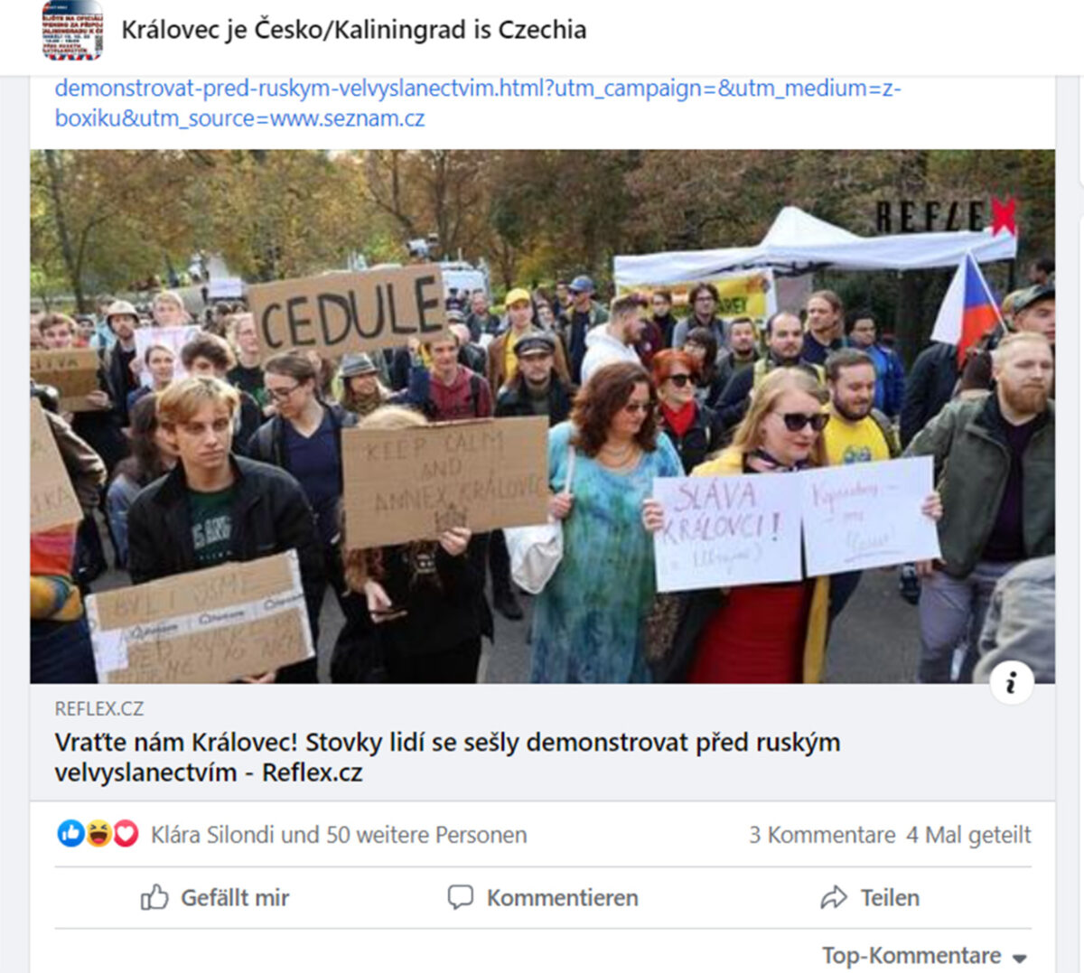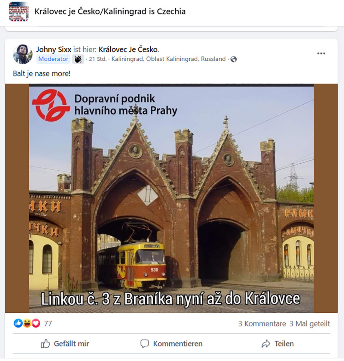 Auf der parallel eingerichteten Internetseite www.visitkralovec.cz ist auf einer gefakten Foto-Collage zu sehen, wie die geballte Prager politische Führung hinter Premier Petr Fiala steht, der die unterzeichnete Aufnahmeurkunde von Königsberg in tschechisches Staatsgebiet in den Händen hält.