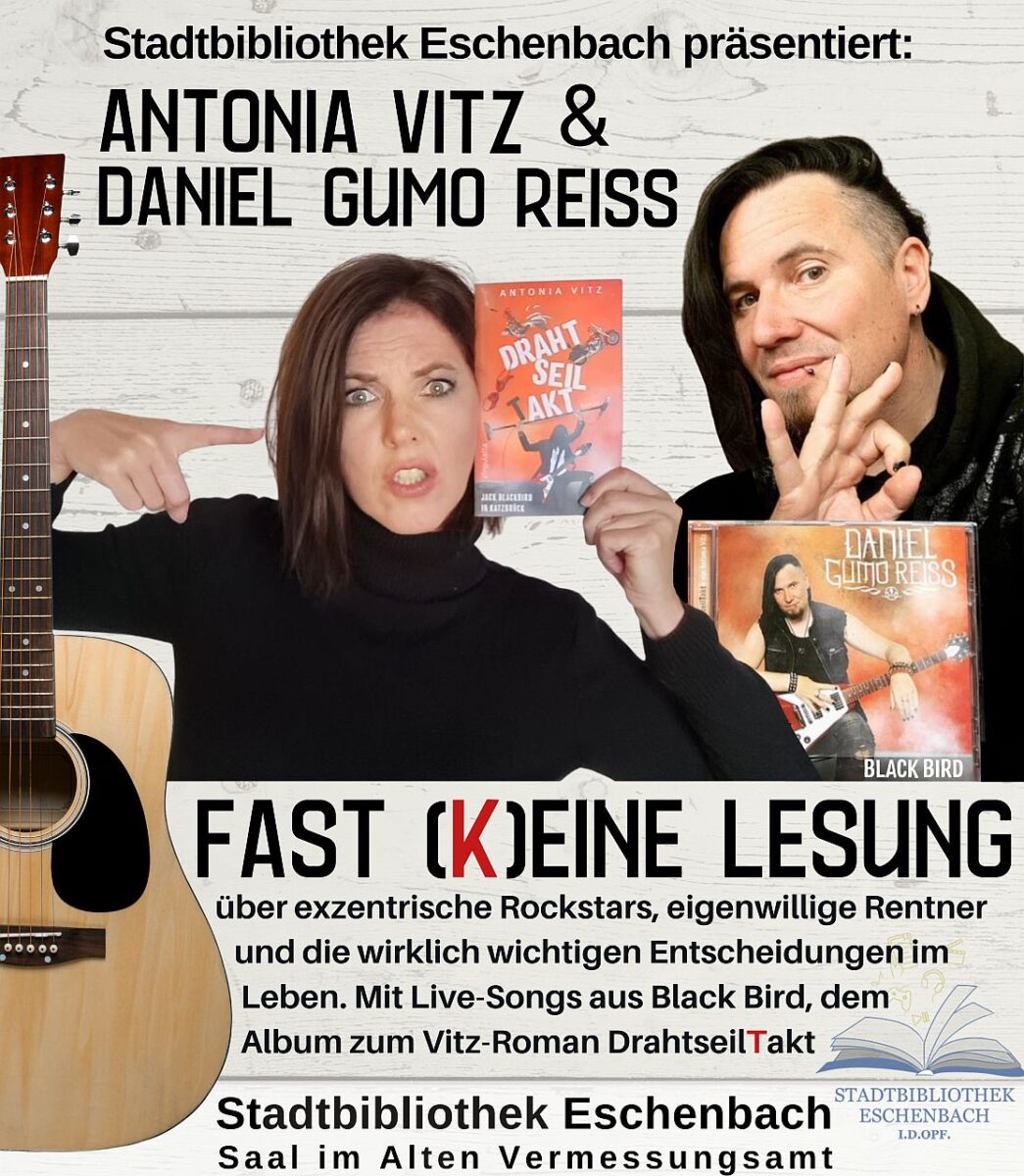 Es ist mehr als eine Autorenlesung, es ist ein gemeinsames Projekt der Romanautorin Antonia Vitz aus Wackersdorf und ihrem Partner, dem Rockmusiker Daniel Gumo Reiss. Eine bayerische Komödie über exzentrische Rockstars, eigenwillige Rentner und die wirklich wichtigen Entscheidungen im Leben.