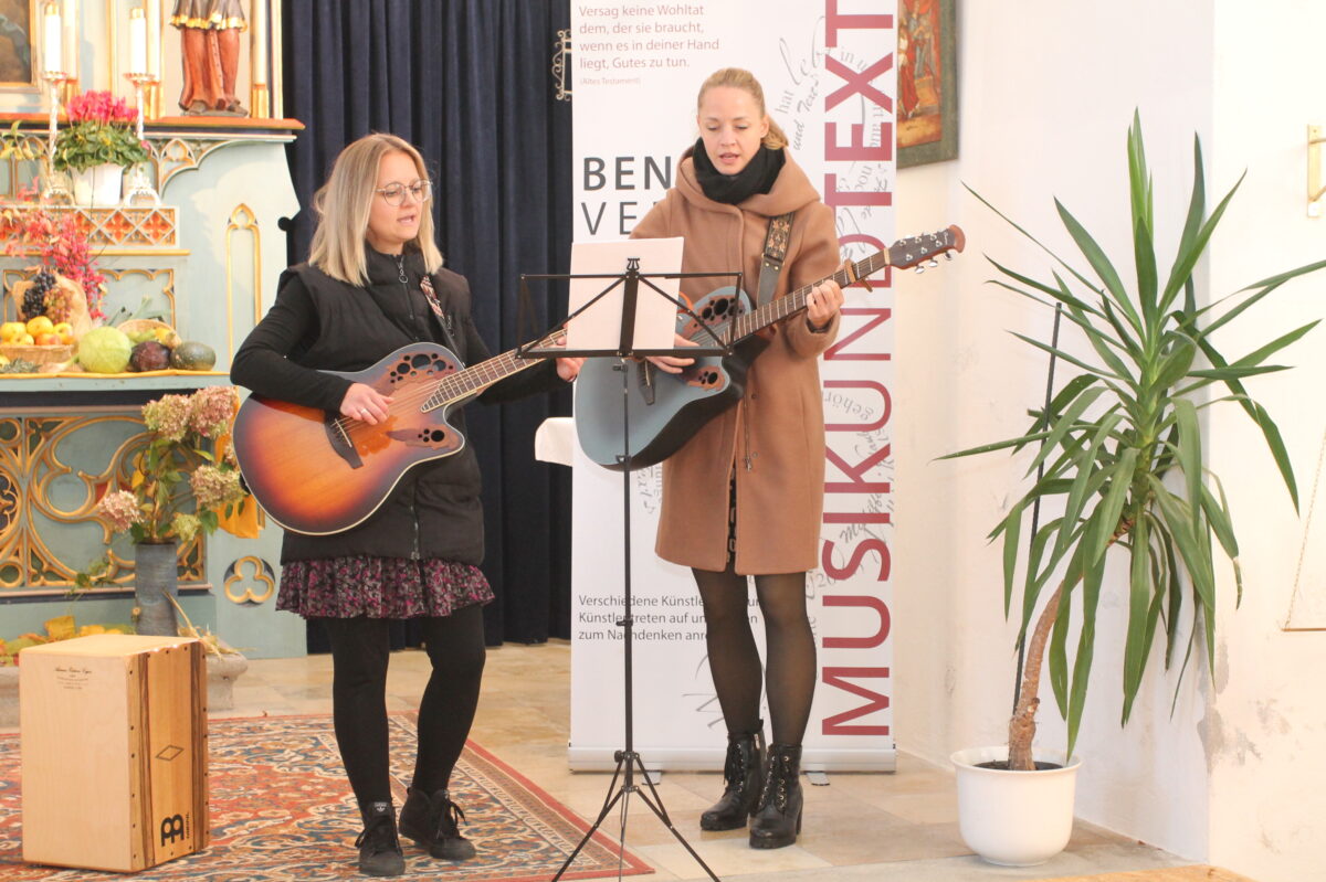 In musikalischer Hinsicht hatte Göldner ebenfalls nicht zu viel versprochen. „Marina Böhm und Magdalena Becher haben heute ihren ersten Auftritt in einer Kirche“, kündigte er an. Bereits mit ihrem ersten Lied „Das Heiligste der Welt“ bewiesen die Weidener Musikerinnen und Sängerinnen ihre hohe Qualität, als sie unter anderem von einem „Mein Halleluja nur für dich“ sangen und versicherten: „Du bist meine Wahrheit. Du bist meine Zuversicht, die alle meine Zweifel bricht.“