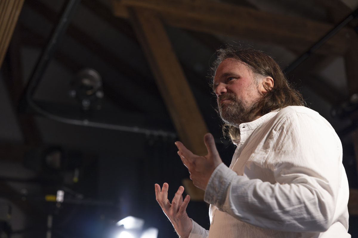 „Bei der Passion in Tirschenreuth sollte ich 2020 den Judas spielen“, erzählt Bernhard Neumann. „Wenige Tage vor der Premiere wurden die Aufführungen aufgrund der Corona-Pandemie abgesagt.“ Bei den Vorbereitungen auf die Rolle sei er damals über den Monolog „Judas“ von Lot Vekemans gestolpert und beim ersten Lesen total fasziniert gewesen von dem Text. „Da es sowieso mein großer Wunsch war, einmal im Leben einen Monolog zu spielen, habe ich während des ersten Lockdowns angefangen, diesen Text zu verinnerlichen.“