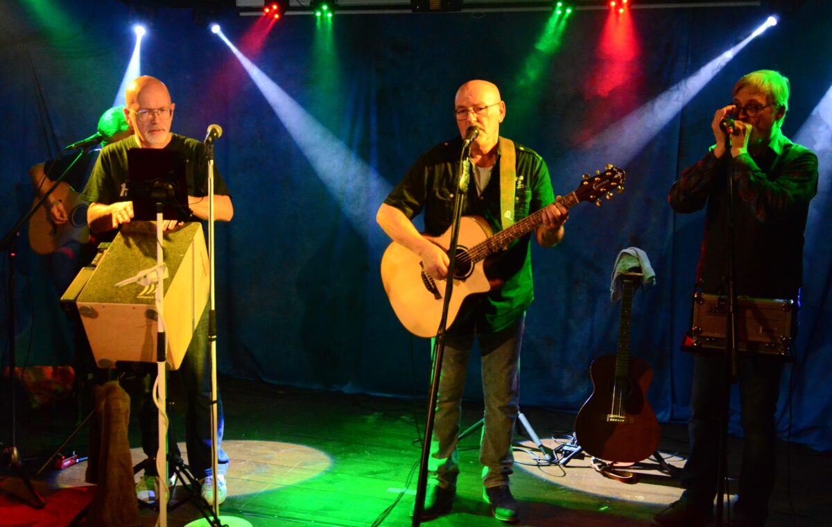 Dann ging das plötzlich alles blitzschnell. Am Donnerstag traf die coronabedingte Absage aus Kemnath ein. Die “Capone & The Prohibition Band” konnte also nicht. Deshalb musste Kneipenwirt Bernd Mende sofort handeln. Und er hatte Erfolg. Am Freitag standen auf der “Live Stage” im “Kulturbahnhof Parapluie” die “Blueskojoten” – Untertitel: “The Werwolfes of the Blues”.