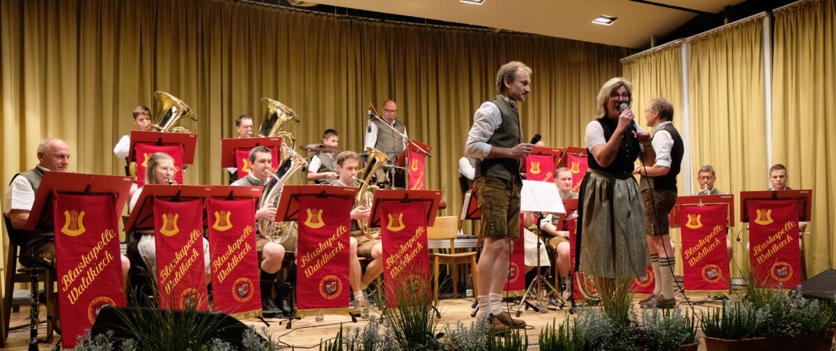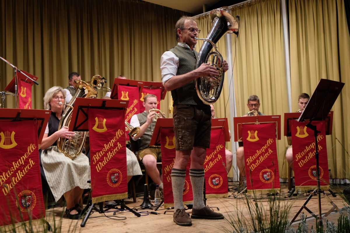 Mit „Ja, das ist Blasmusik“ startete Teil Zwei und die „Weinkeller-Polka“ hatte es in sich. Bastian Völkl brillierte mit der „Löffel-Polka“ und durfte dafür einen Sonderapplaus in Empfang nehmen.