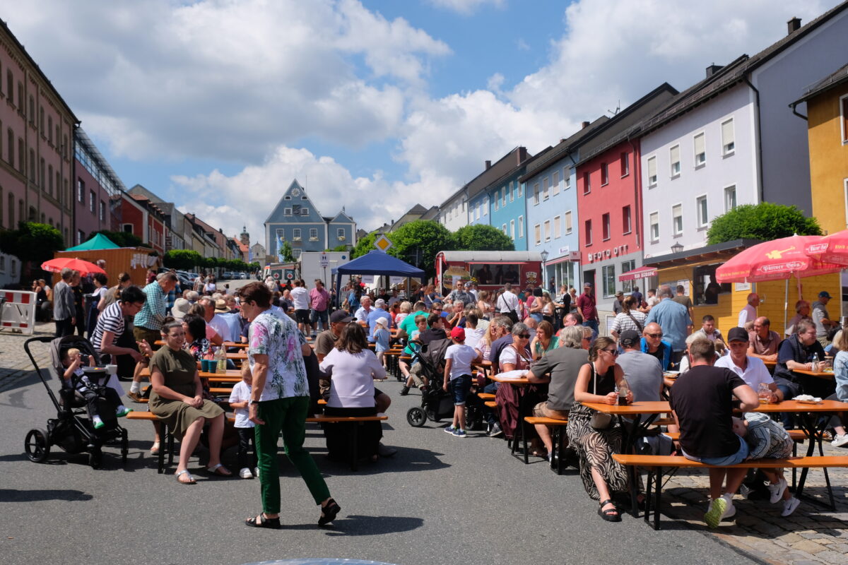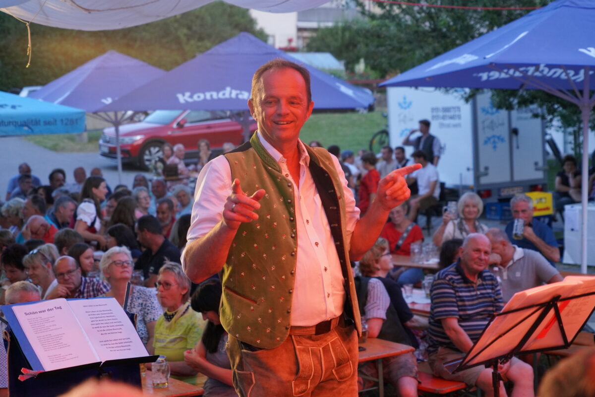 Moderator des Abends war „LANDkultur- Mitorganisator Hans-Peter Reil, der launig und lustig kommentierte und selbst natürlich mit bei der Trachtenkapelle Waldthurn musikalisch agierte. Dort wo Bürgermeister Josef Beimler am Eingang seinen Frühstückkaffee trinkt und sich seine Zigarillo anzündet, war die Bühne aufgebaut. Andy Fritsch aus Obertresenfeld sorgte für den guten Ton und am Abend für entsprechendes Ambiente. Manche wagten direkt vor dem Rathauseingang ein Tänzchen.