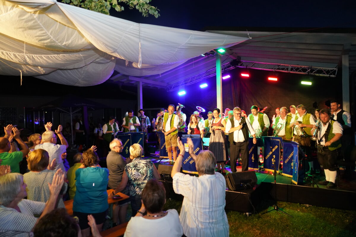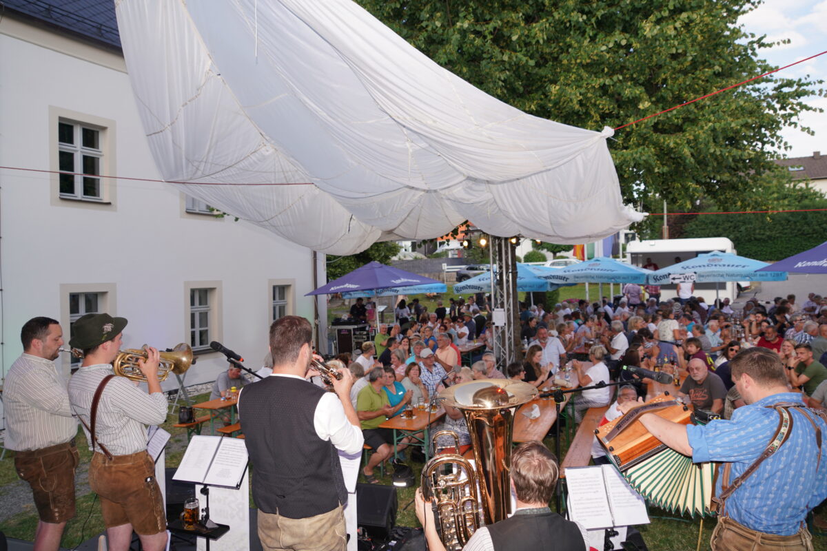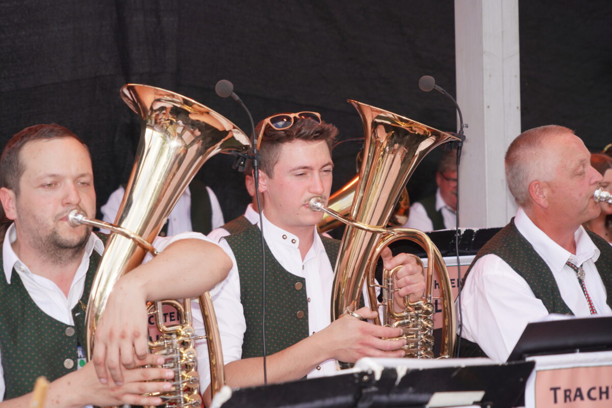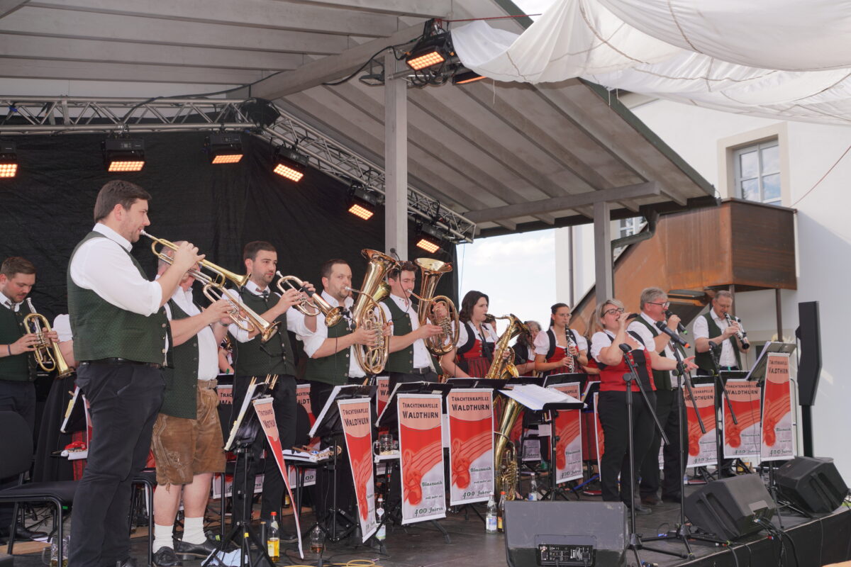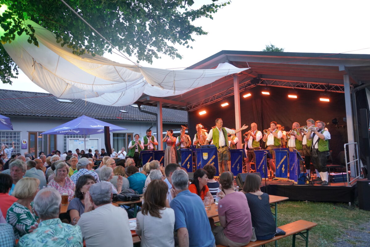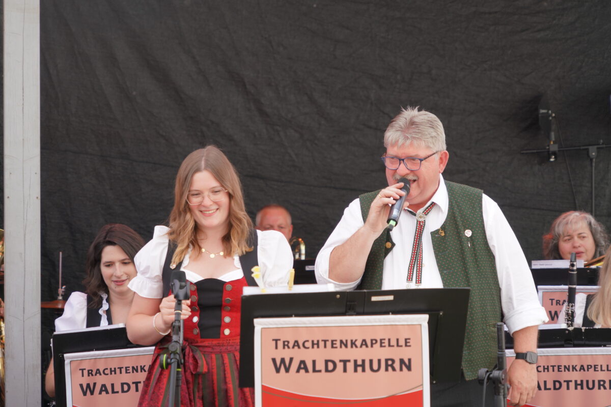 Bei herrlichem Sonnenschein und warmer Witterung war gerade am Abend das Areal um die „Pfarrer Andreas Renner -Linde“ vollbesetzt, die Kolpingsfamilie präsentierte beste Burger, der FSV – Fußballer brachten die leckeren Bergler – Bratwürste samt Grillfleisch auf den Teller und die Waldthurner Feuerwehr löschte den Durst der vielen Blasmusikfans.