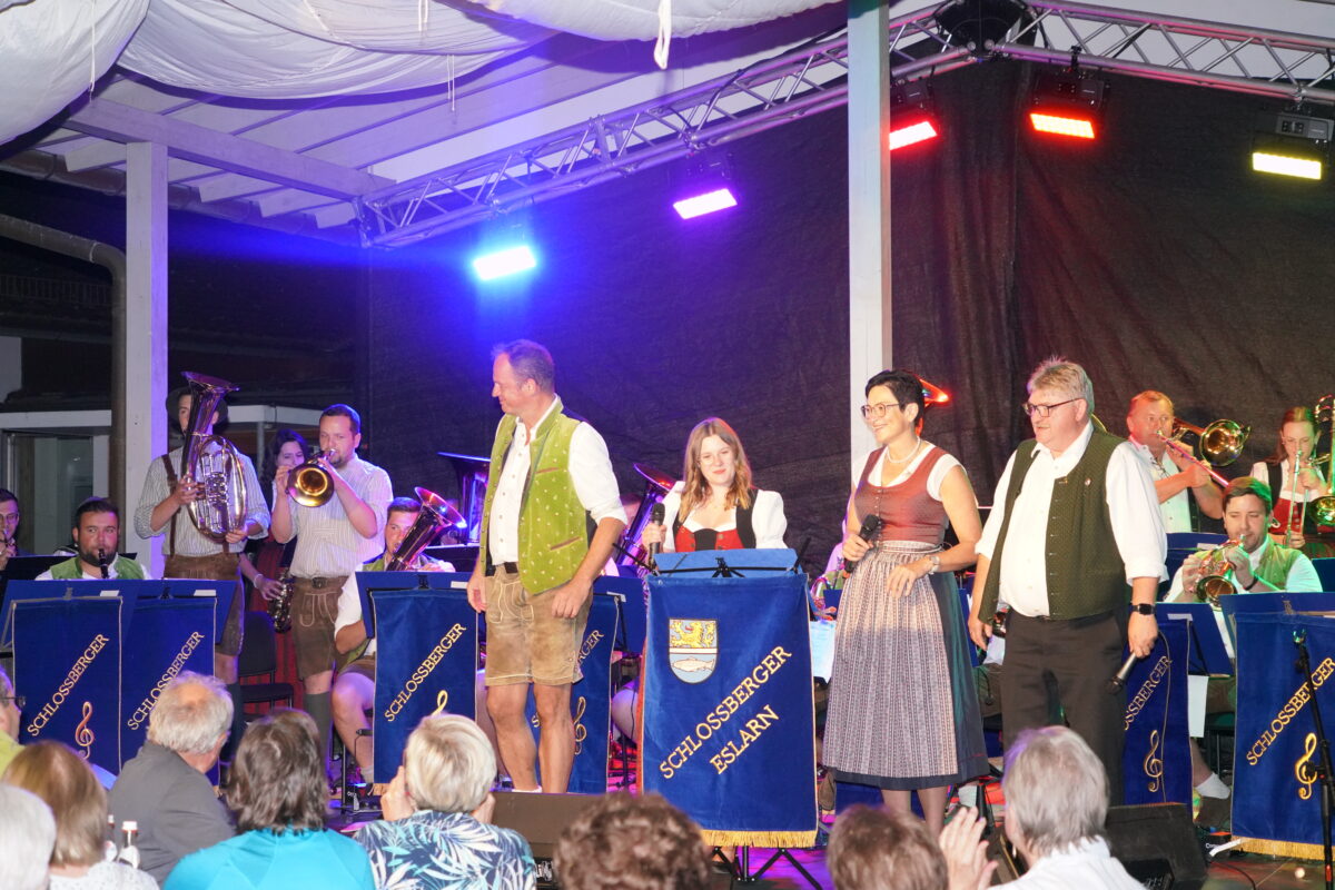 „Wir haben zu Waldthurn schon immer eine gute Verbindung, bei uns spielt mit Felix Griesbach ein Waldthurner das Flügelhorn. Die Leute hier sind herzlich, Eslarner und Waldthurner können es sehr gut miteinander“, sagte Moderator und Sänger der Schlossberger, Norbert Roßmann. Er, die Sängerin Elisabeth Grießl und das gesamte Ensemble nahmen die begeisterten Zuhörer professionell und mitreißend mit auf eine Reise ins Egerland.