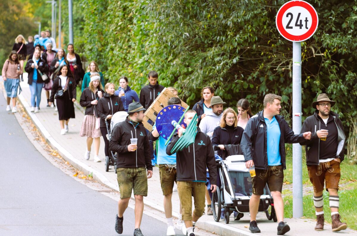 Die Etzenrichter ließen sich die Lust auf die Feier der Kirchweih auch von dem am Vormittag schon aufziehendem Schlechtwetter nicht vermiesen. Auch bei den kontrastreichen Freiluftterminen war die Feierlaune nicht eingeschränkt. Der Startschuss fiel gegen 10 Uhr, Treffpunkt für die „Kirwaleit“ war in der Schustergasse. „Heute waren wir fast 50 junge Leute, mittlerweile rücken viele Jugendliche und zahlreiche Kinder nach. Vor allem, weil es den Verein schon einige Jahre gibt“, freute sich Magdalena Zwack, bei der die Fäden für die Organisation und Durchführung zusammen laufen.