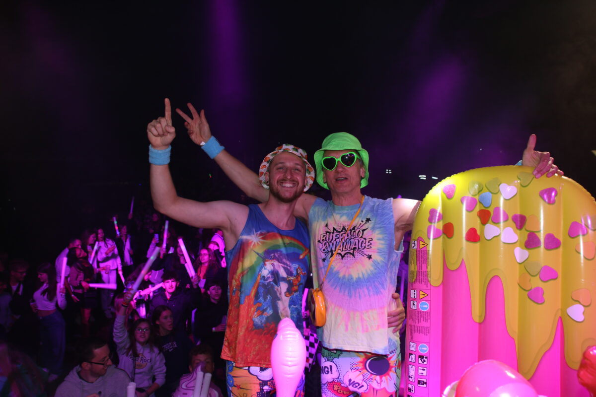 Gerade die Interaktion mit dem Publikum ist ihnen wichtig: Immer wieder warfen sie Aufblasfiguren ins Publikum, verteilten bunte Leuchtstäbe und forderten zum Moshpit auf: Die Menschen auf der Tanzfläche gingen in einem Kreis in die Hocke und tanzten auf Kommando wild los, Rempler inklusive. Mit ihrem wilden Herumgehampel und unorthodoxer Tanzweise gewannen sie schnell die Menge und sorgten für tolle Stimmung.