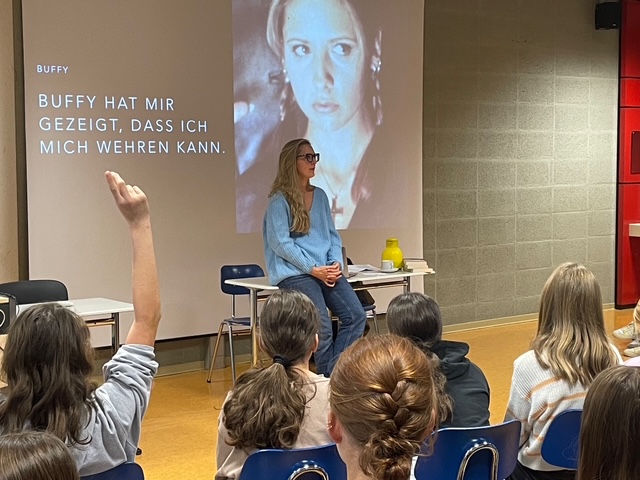 Am nächsten Tag leitete sie zwei Workshops für Mittel- und Oberstufe. Die Einheiten stärkten die Resilienz und das Selbstbewusstsein heranwachsender Mädchen und appellierten an Aufmerksamkeit für Veränderungen in politischer Kultur und Sprache.