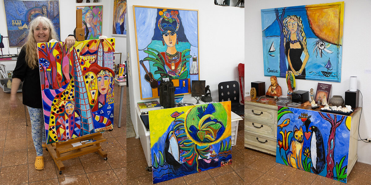 Golden sind dagegen die Jahre in Florida für die Künstlerin, die sogar vom renommierten deutschen Journalisten Roger Horné – damals als Auslandskorrespondent Gast in vielen Diskussionsrunden des US-Fernsehens wie CNN, CNN International, CBS, Fox News und C-Span – porträtiert wird. „Ich konnte gut von meinen Verkäufen leben“, blickt sie nostalgisch zurück. „Es gab noch keine Billigkopien aus China, die Amerikaner kauften gerne Kunst im Original.“