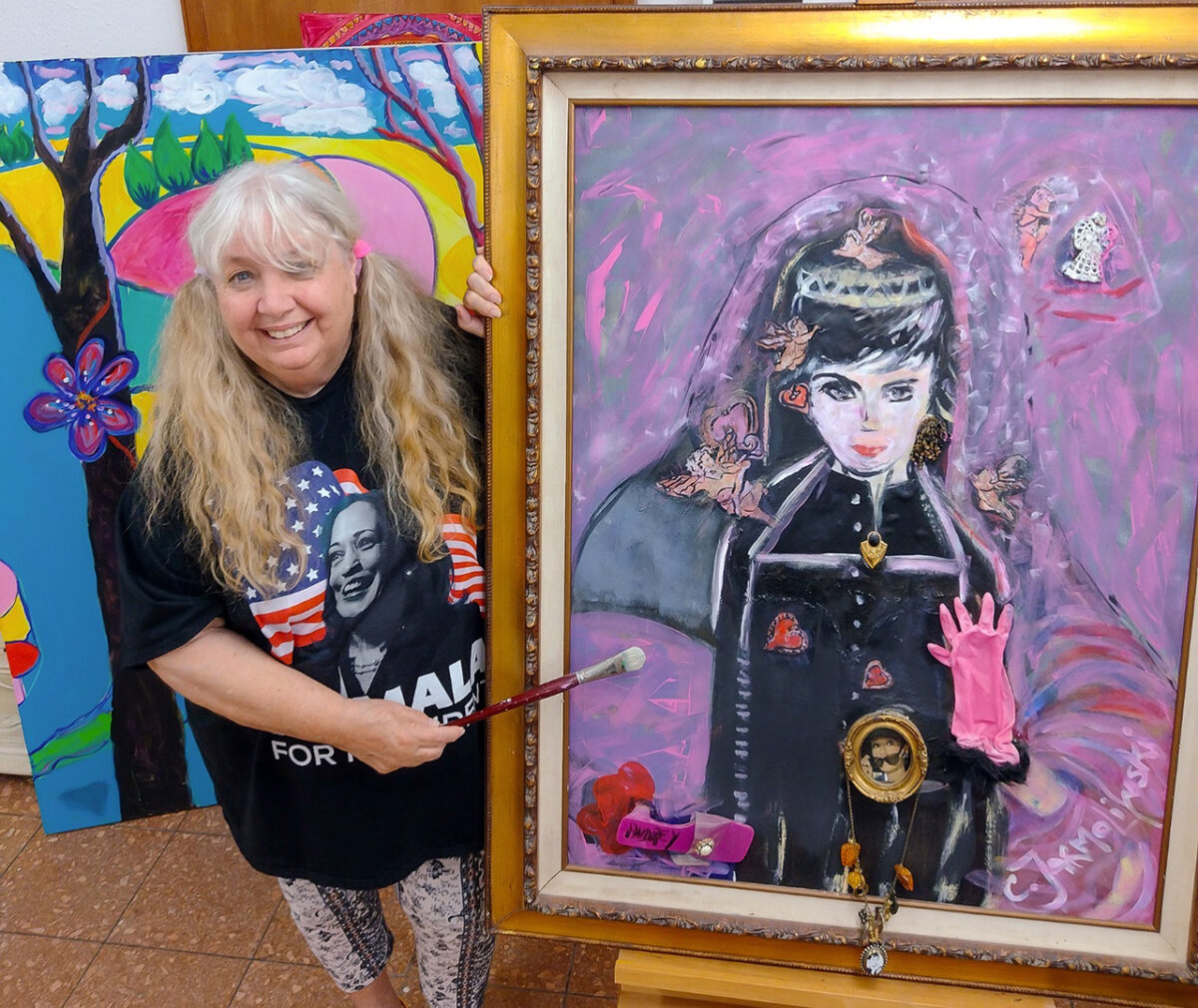 Auch wenn Jarmolinski in diesem Jahrzehnt fast alle Werke verkauft, einige großformatige Reminiszenzen an diese Ära – wie das dreidimensionale „Frühstück mit Tiffany“ – finden sich heute noch in ihrem neuen Atelier in Tännesberg. „Sie habe ich behalten“, erklärt Christina, „die Schauspielerin Audrey Hepburn hat mir in ihrer schlichten Art immer gefallen.“ Die Porträts amerikanischer Ikonen, darunter auch Marylin Monroe, erinnern an eine moderne Version des österreichischen Meisters des vergoldeten Jugendstils, Gustav Klimt – nur eben in Pop-Bunt.