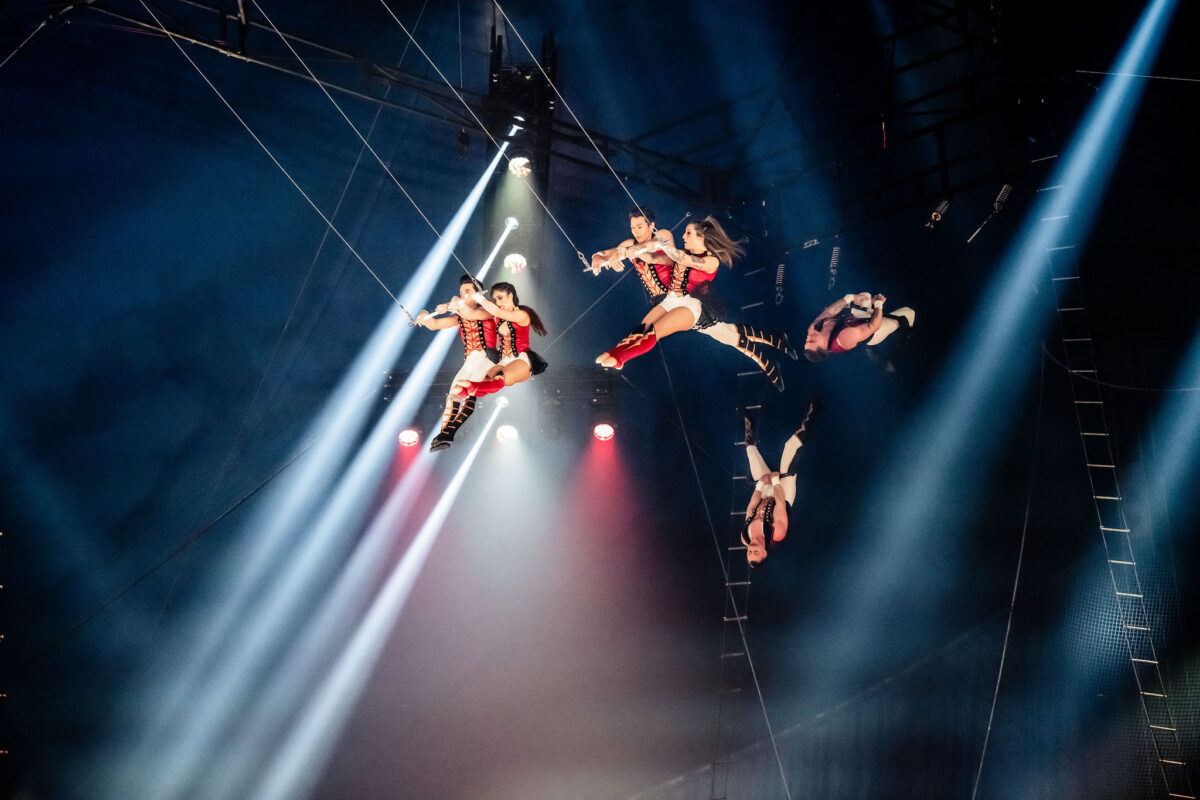 Auch die anderen „Ladies der Lüfte“ sind mehr als bloße Dekoration: Sie meistern die Doppelpassage und den doppelten gestreckten Salto mit Eleganz und Leichtigkeit, zuletzt sogar im UV-Licht. Der farbenfrohe Abgang ins Netz setzt dem Nervenkitzel die Krone auf. Die Idee zu diesem einzigartigen Act hatten Katya Arata Quiroga und Nelson Quiroga im Jahr 2000, und schon bald darauf erhielten sie eine Einladung nach Monte Carlo. Der Lohn ihrer Arbeit war 2004 der Gewinn des Goldenen Clowns und der Auftritt in der „Golden Show“ 2016. Heute sind es ihre Kinder, die die Tradition des Flugtrapez in achter Generation fortführen, während die Eltern den Circus Vargas in den USA leiten. Die Flying Tabares präsentieren eine All-Star-Besetzung. Ein brillanter Bilderrausch, verfeinert mit argentinischem Temperament – direkt aus den USA vom größten Circus Amerikas.