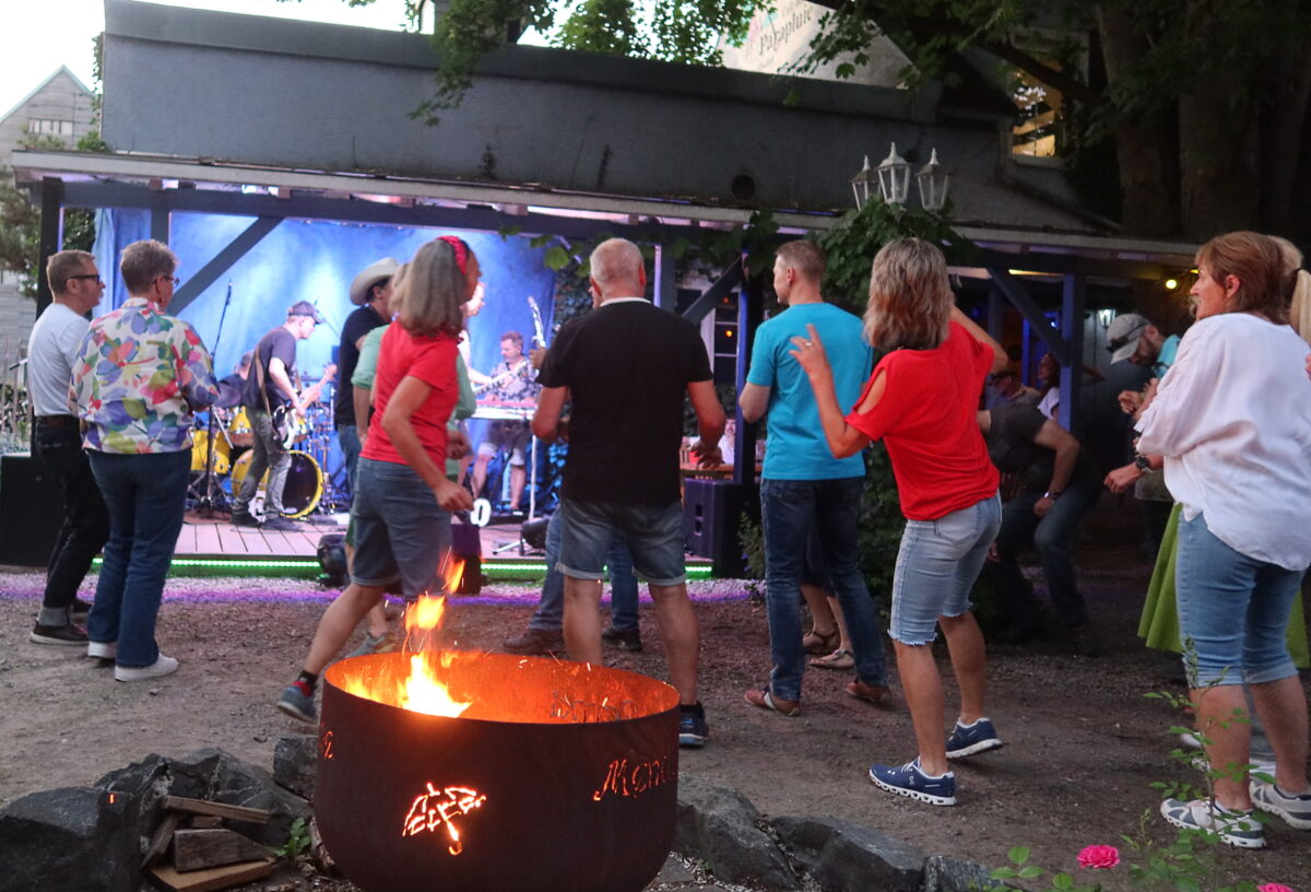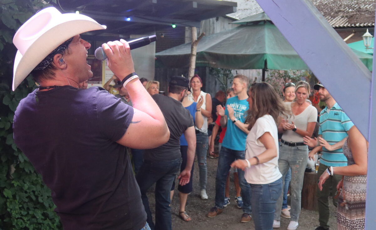 “Save a Horse, ride a Cowboy”, “Sweet Home Alabama”, “Jeans on”. Das Publikum war ziemlich homogen. Die Jüngeren waren so Mitte 40. Aber vor allem auch die 60-jährigen und älteren fühlten sich gut aufgehoben am Lagerfeuer. Arrangiert war das Songbook von Frontsänger Jamey und Gitarrist Richie, einem Riesenfan von Richie Sambora aus der Bon-Jovi-Band. “Ich komme eher aus dem Hard-Rock-Bereich und bin mit Bon Jovi groß geworden.” Ihm gefällt deshalb neben traditioneller Countrymusik auch solche mit mehr Dampf dahinter.