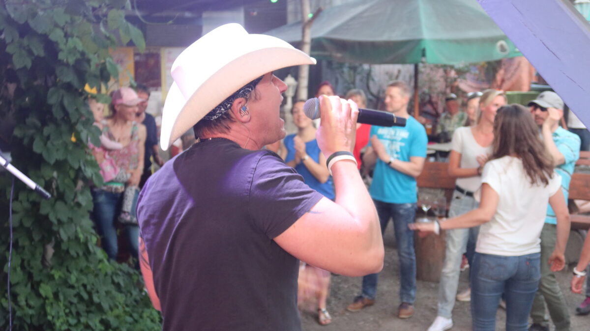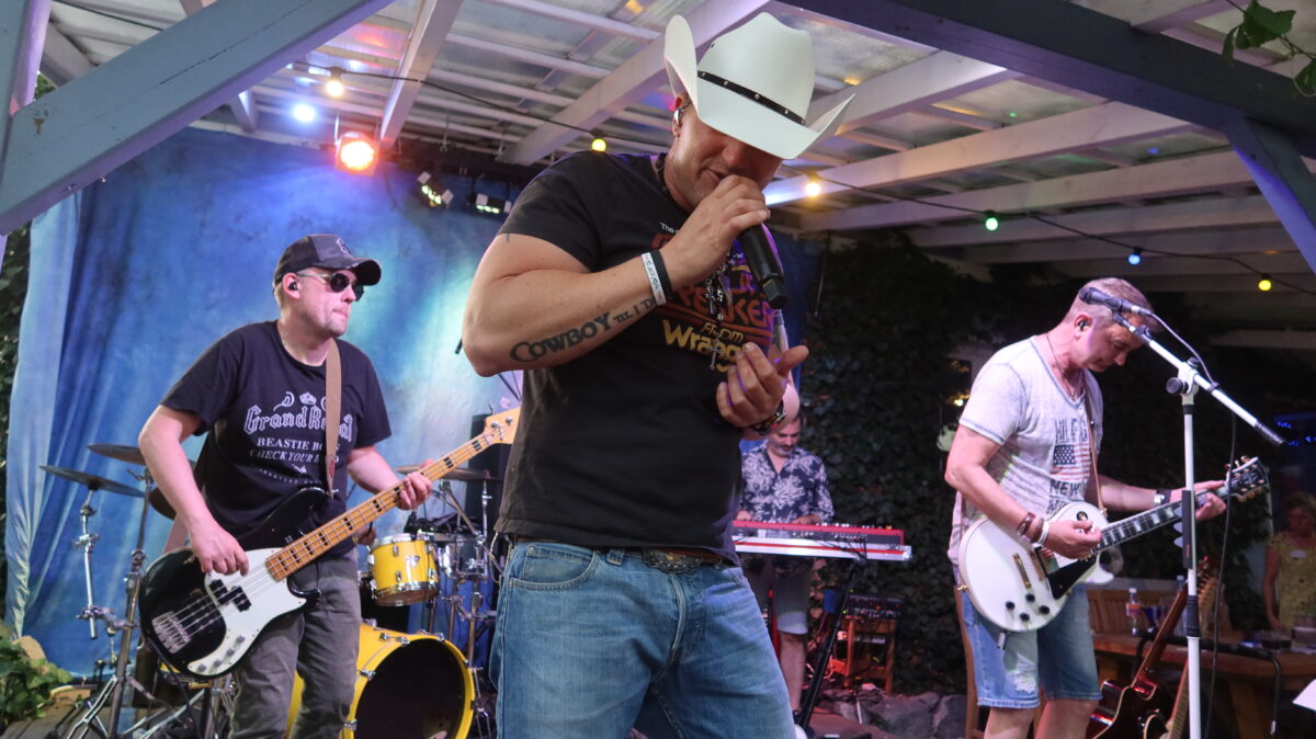 Bon Jovi fallen unter die Rubrik Country-Rock, klärte Jamey auf. Und das passe zur “American Rock Show” seiner Combo, die sich aus erprobten Haudegen aus München und Freising zusammensetzt, wie die Faust aufs Auge. “The Wild Ride” brachte am Freitagabend das Feeling einer modernen amerikanischen Country- und Rock-Musik auf die Biergarten-Live-Stage. Jamey sang keine bittersüßen Protestsongs, sondern ohrgängige, energiegeladene Lieder. Er gab den Animateur, der aus den Besuchern Hupfdohlen machte. Und die Leute klatschten mit.