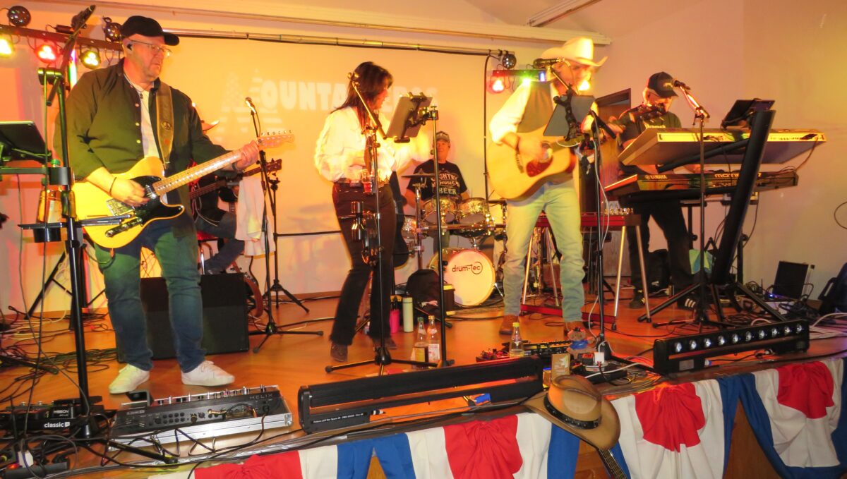 Wenn man es nicht gewusst hätte, dass man im Festsaal in der Basaltgemeinde Parkstein ist, hätten die Gäste meinen können sie befinden sich mitten in Texas in den USA. Mit dröhnenden Country-Rock heizte die Band Mountaineros aus Weiden den Besuchern des Benefizkonzertes, zu dem die Freie Wählergemeinschaft und der Förderverein SV Parkstein in den Festsaal geladen hatte, kräftig ein.