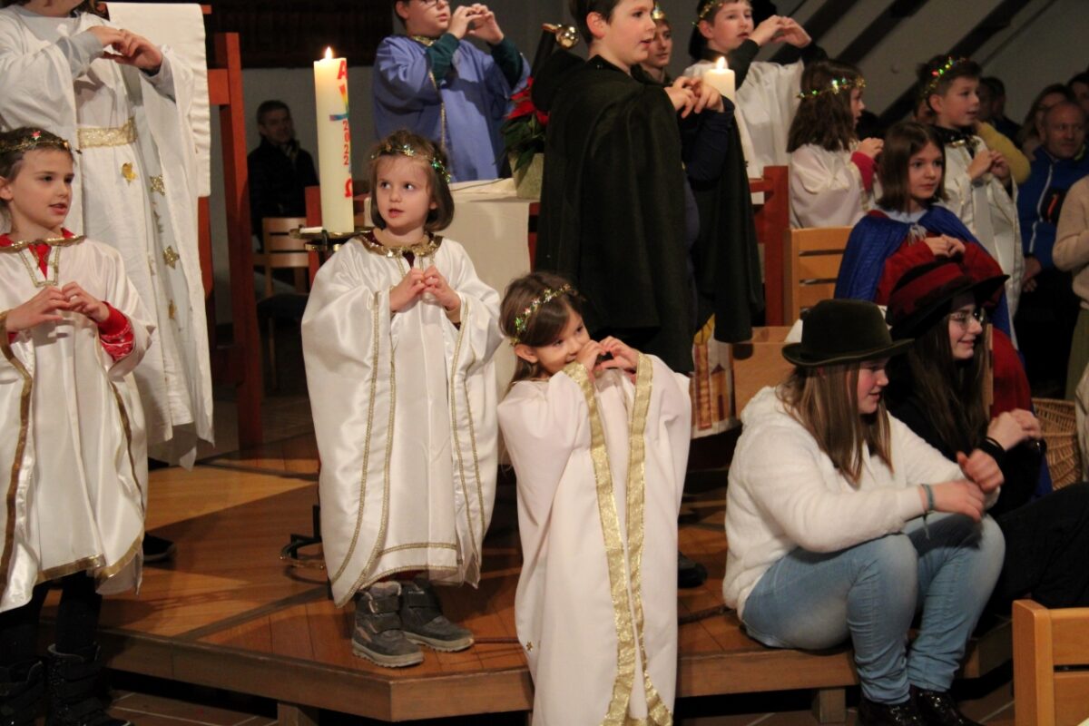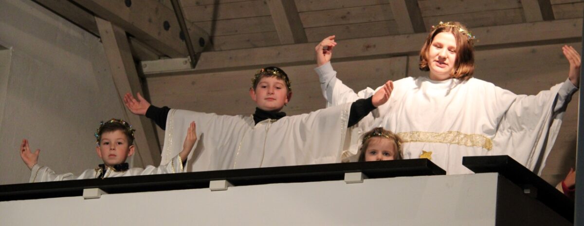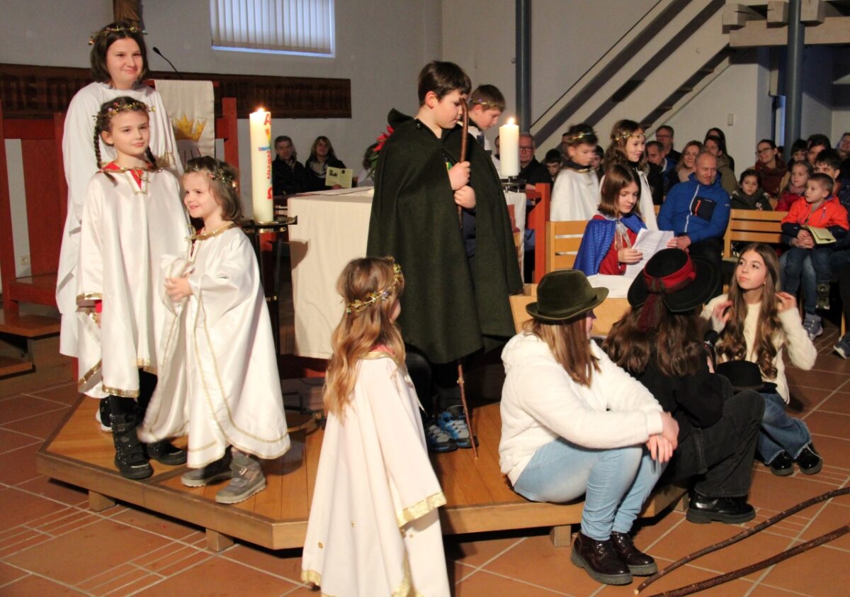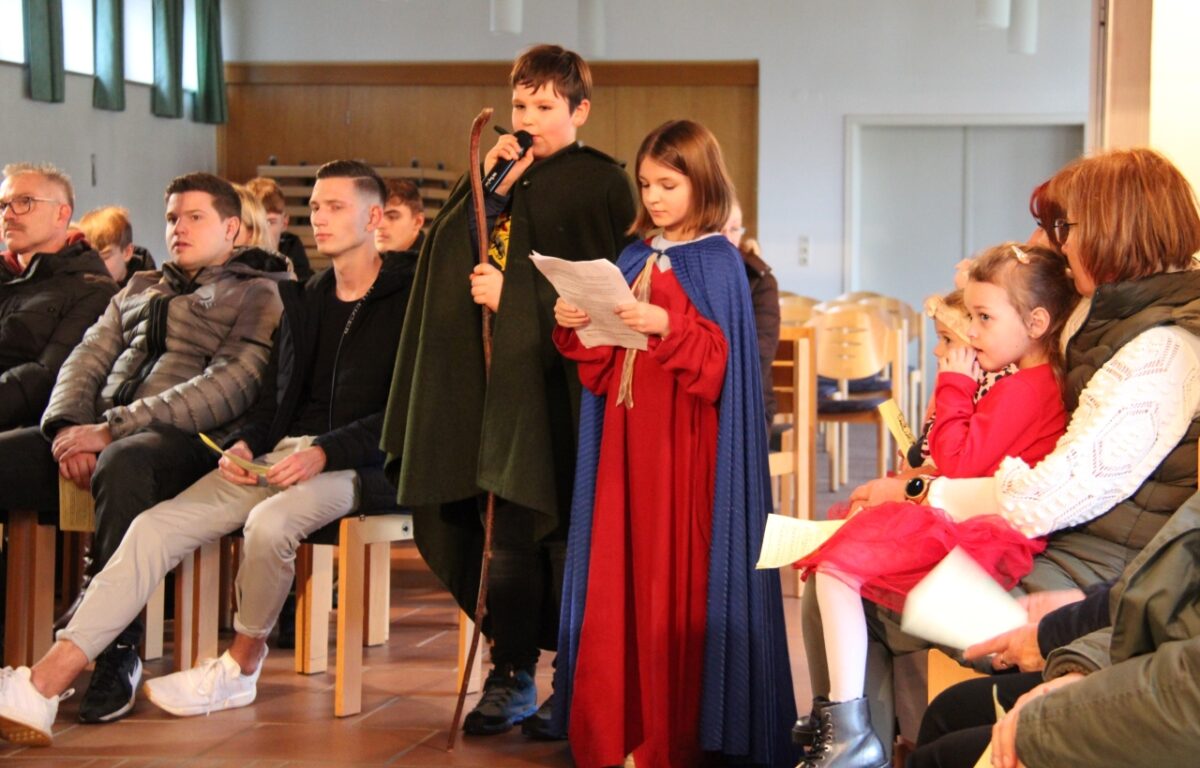 Für Pfarrer Ulrich Gruber ging ein großer Weihnachtswunsch in Erfüllung: „Ein Gottesdienst ohne Corona-Abstand und Schalldämpfer vor dem Gesicht“. Eingebettet in den Familiengottesdienst erzählten und spielten Kinder, Jugendliche und eine Seniorin in verschiedenen Szenen die biblische Weihnachtsgeschichte nach. Dabei war die jüngste Mitwirkende noch keine drei und die Älteste fast 80 Jahre alt.